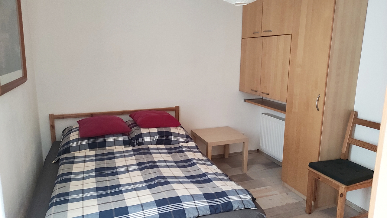 Garten zur Mitbenutzung, Terrasse zur alleinigen Nutzung, Wohnzimmer mit Schlafsofa und Arbeitsplatz, Schlafzimmer mit franz. Bett 1,40 m. Bettwäsche und Handtücher vorhanden. Glasfaser-Highspeed-Internetanschluss inkl. PKW-Stellplatz auf Anfrage.