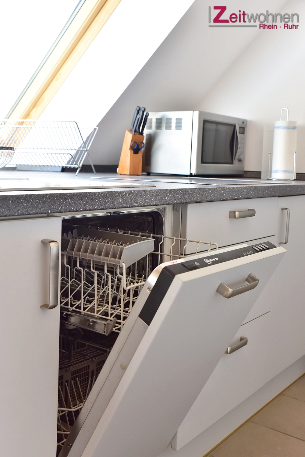 zeitlose Möblierung, großzügige Dachliegefenster, hochwertige Klimaanlage, Böden Laminat und Fliesen, voll ausgestattete integrierte Einbauküche mit Spülmaschine, Mikrowelle/Grill, Cerankochfeld, Badezimmer mit Dusche, 40“ Smart-TV DVB-T2/WLAN, DVD-/Stereo-Anlage, Klimaanlage, WLAN-Internetzugang (Glasfaser) gg. gesonderte Vereinbarung, Waschmaschine und Trockner in Waschküche