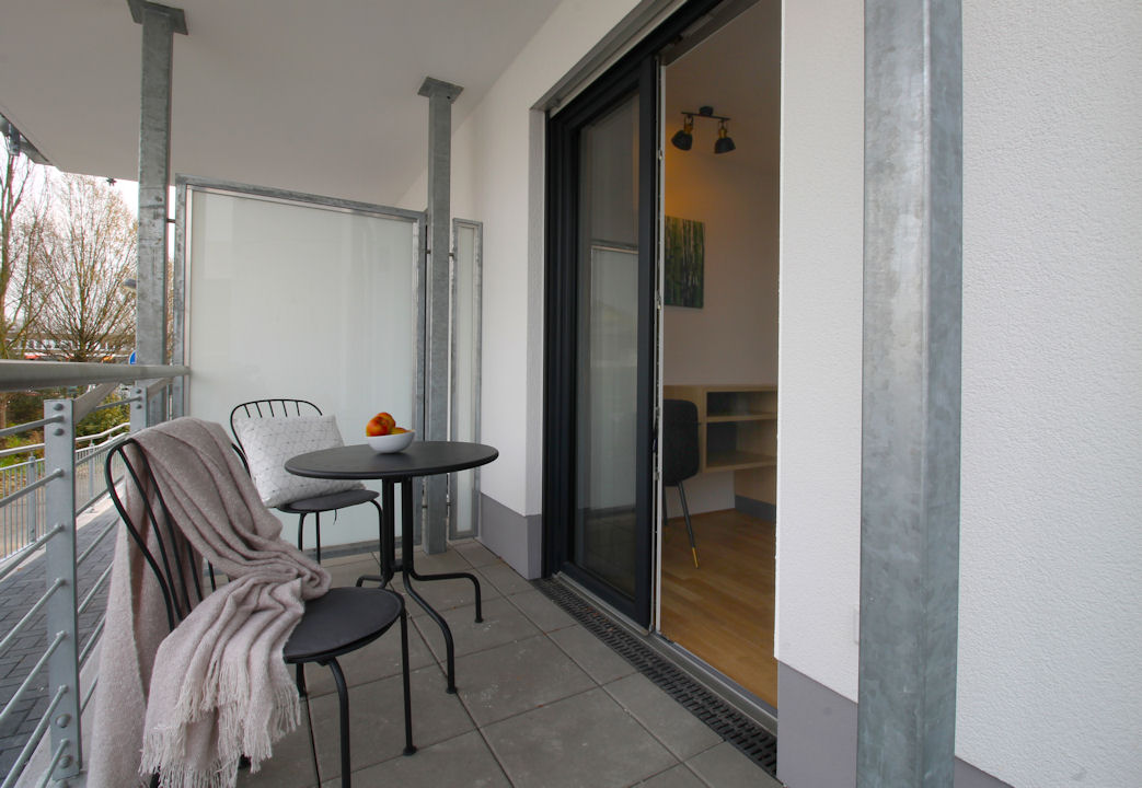 Große Terrasse, Wohn/Schlafzimmer mit optisch abgetrenntem Schlafbereich mit Doppelbett 1,60m, Bettwäsche und Handtücher optional, inkl. WLAN-Internetanschluss mit 50MBit, Tiefgaragenstellplatz kann bei bedarf angemietet werden, Tierhaltung nicht gestattet, Nichtraucher, max. 2 Personen, Mindestmietdauer 6 Monate,