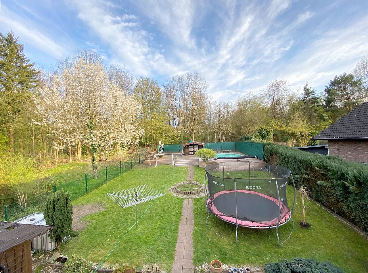 Garten mit Pool, Wohn-Ess-Zimmer mit Schlafsofa, weiteres Zustellbett möglich, Schlafzimmer mit Doppelbett 180cm , Ankleidezimmer, Bettwäsche und Handtücher vorhanden, inkl. WLAN Internetanschluss, inkl. Stellplatz mit Wallbox, Tierhaltung nicht gestattet, Nichtraucher, max. 4 Personen, Mindestmietzeit 6 Monate