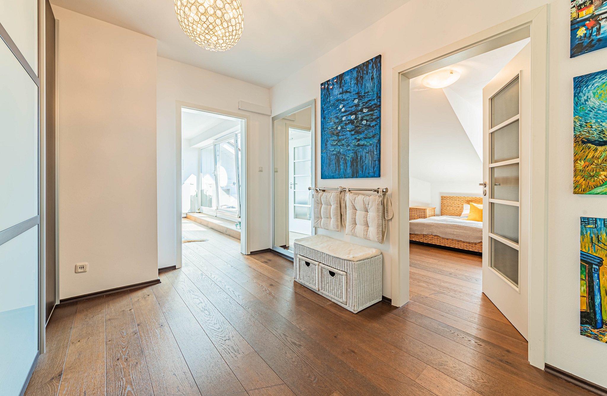 4. Etage, kein Lift, Dachgeschoss mit Schrägen, Skylineblick