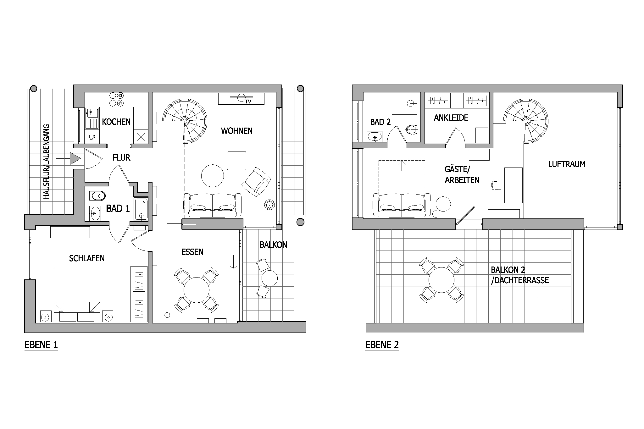 , Tisch mit Stühlen - sonnige 2. Dachterrasse