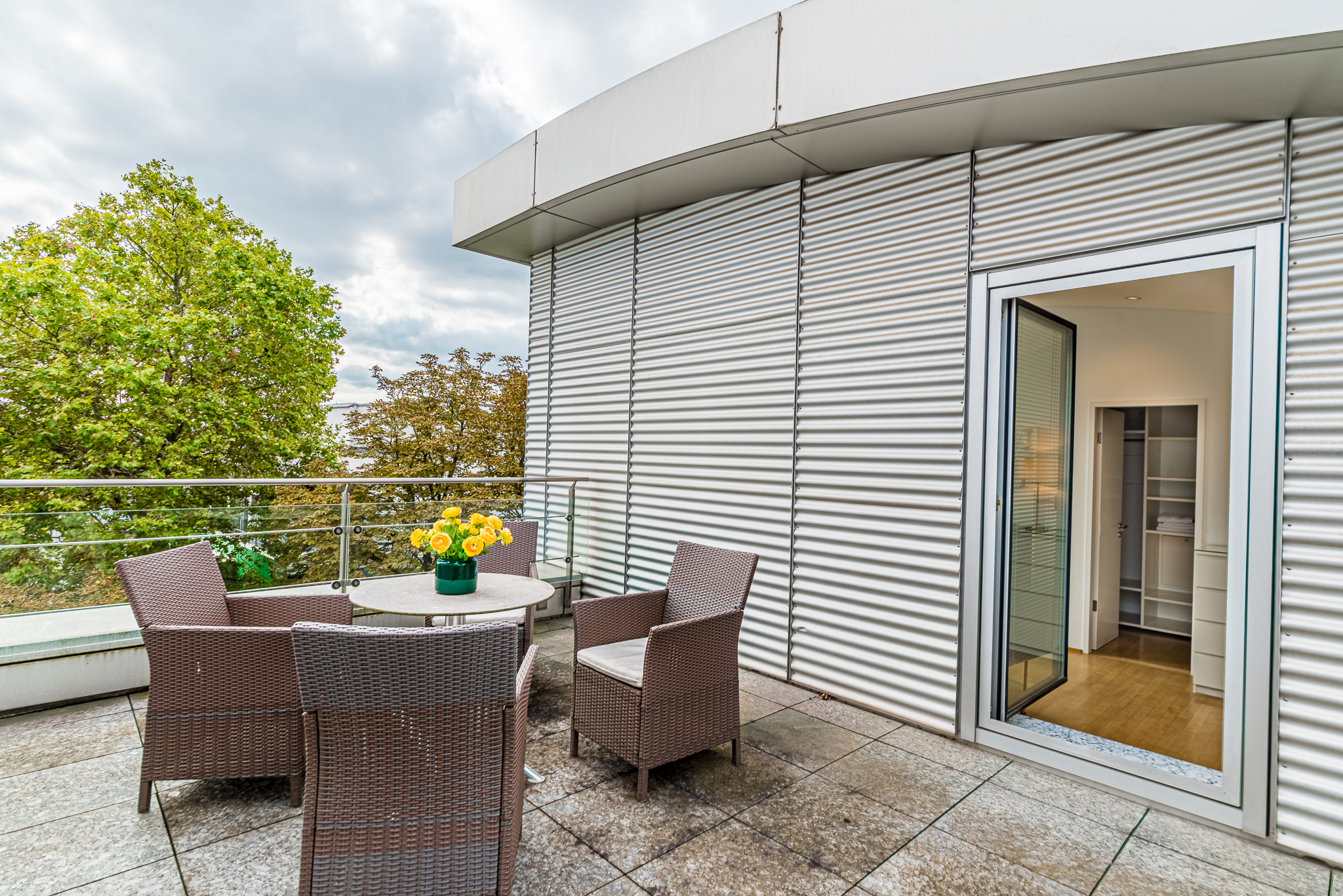 - Schöne Dachterrasse mit Blick auf die Skyline