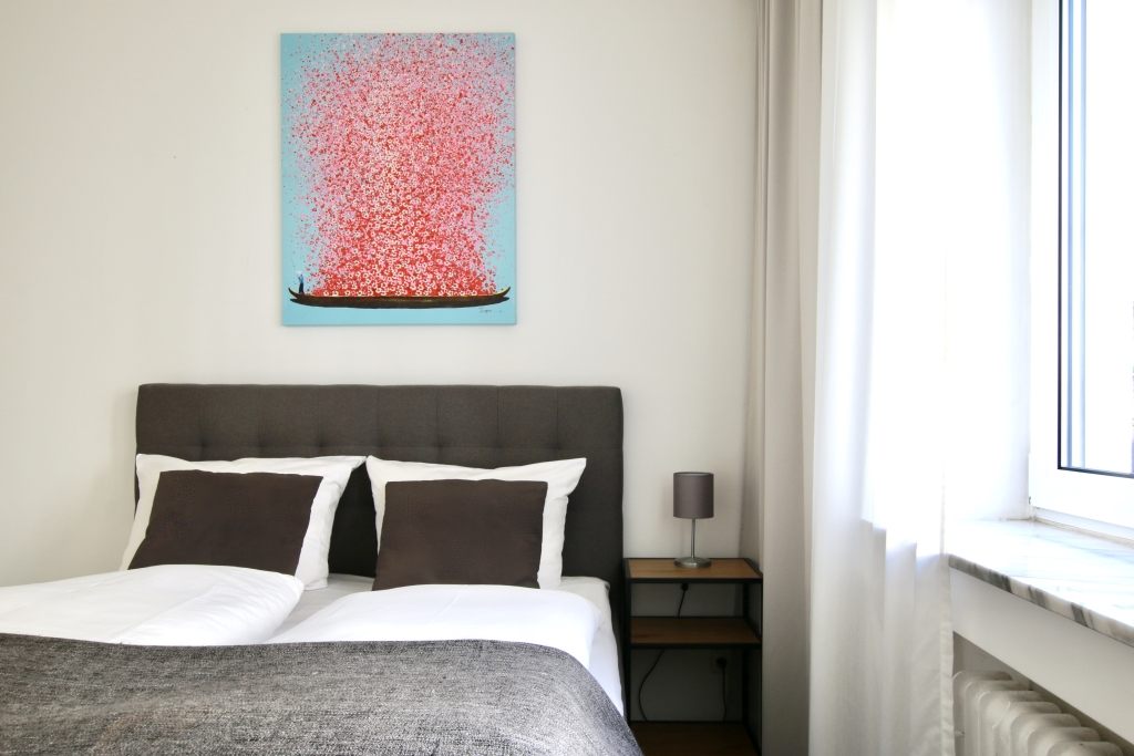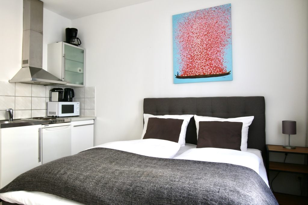 Wohn/Schlafzimmer mit französischem Bett 1,40 m, Bettwäsche und Handtücher vorhanden, Nichtraucher, inkl. WLAN-Internetanschluss, Reinigungs- und Wäscheservice Auf Wunsch gegen Aufpreis, Mindestmietdauer: 3 Monate