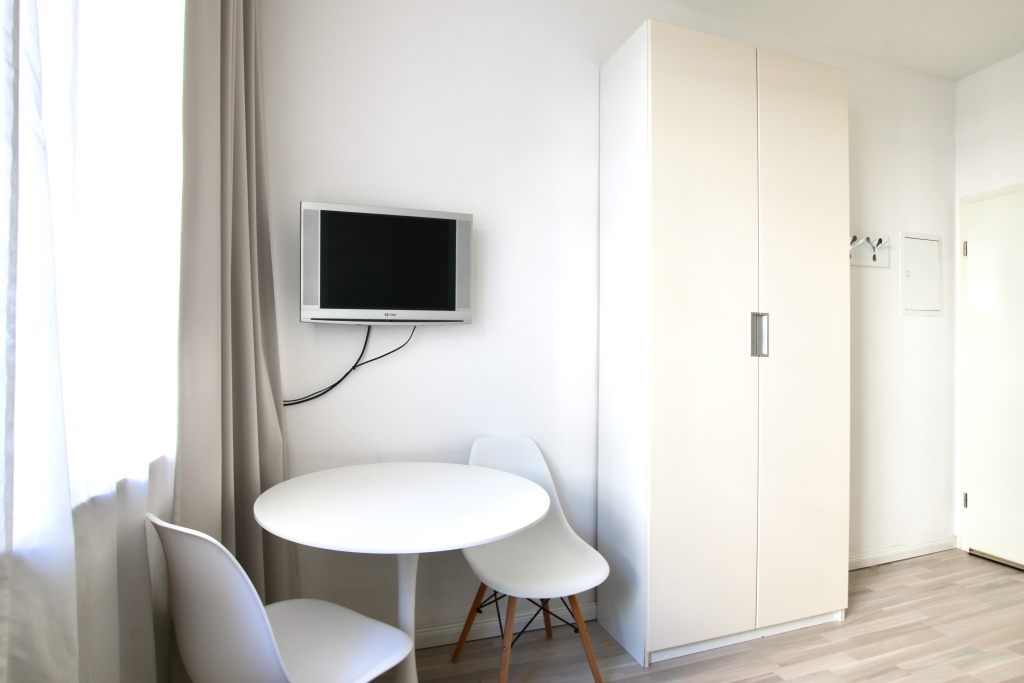 • moderne Möblierung, Fliesenboden, integrierte Singleküche, Badezimmer mit Dusche, Flatscreen, Kabel-TV, WLAN-Internetanschluss