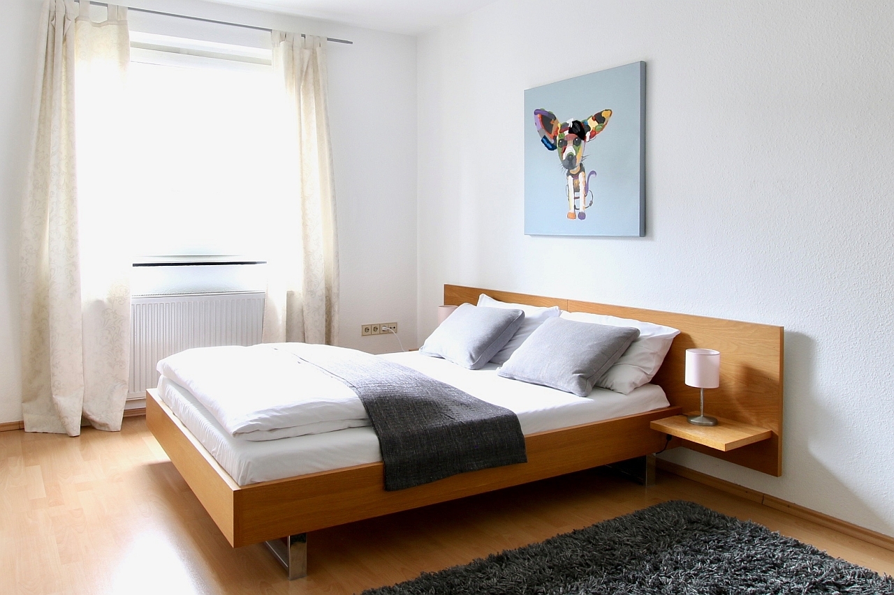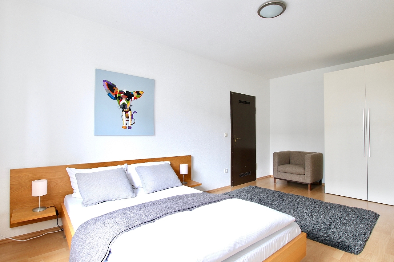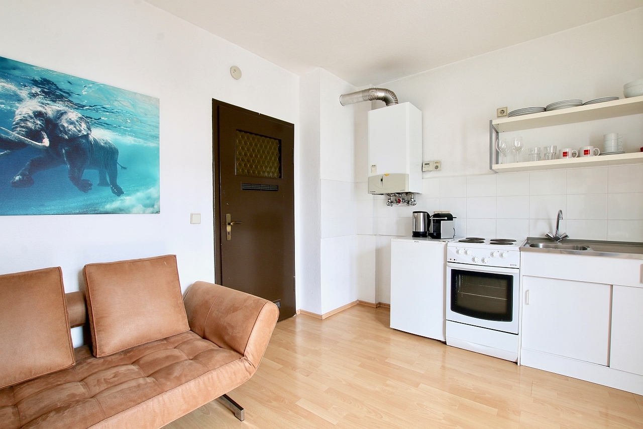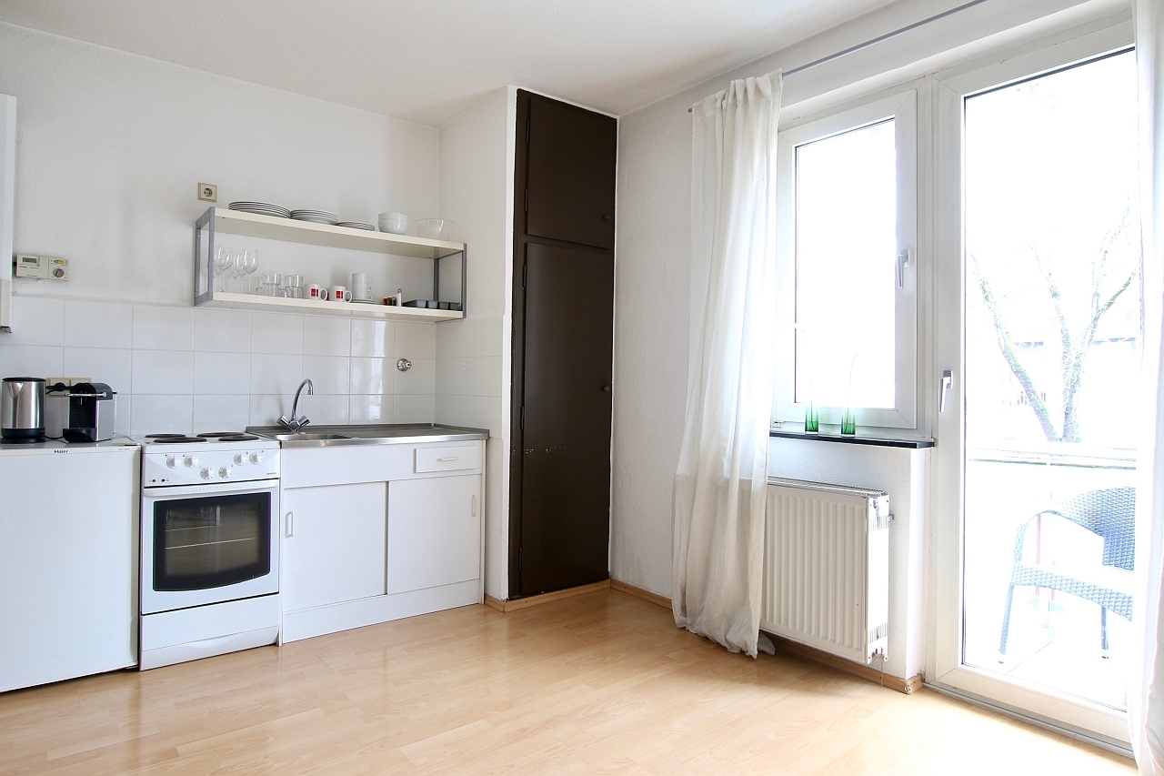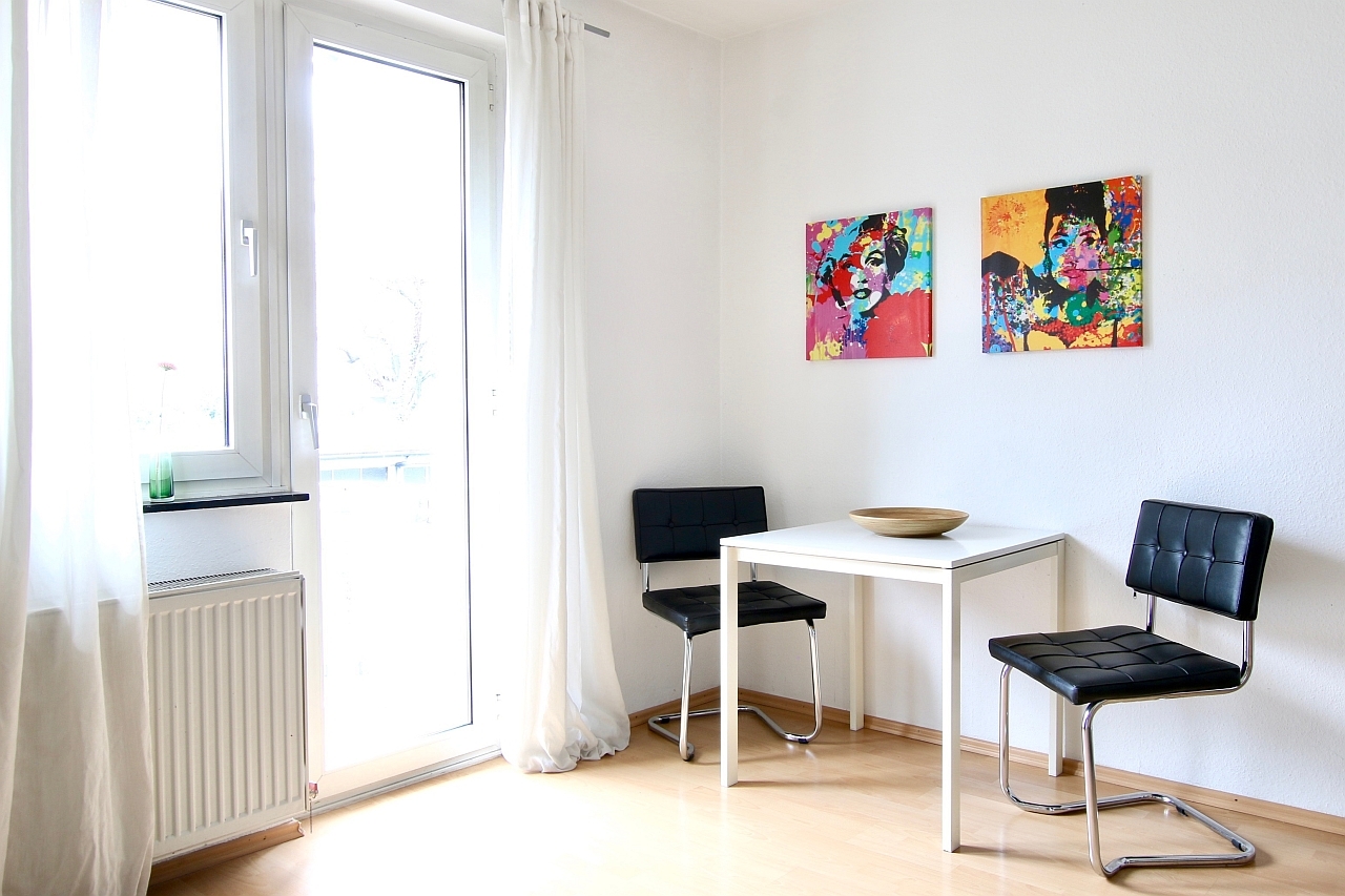 Balkon, Wohnzimmer, Schlafzimmer mit franz. Bett 1,40 m, Bettwäsche und Handtücher vorhanden, inkl. WLAN- Internetanschluss, Bettwäsche- und Reinigungsservice auf Anfrage gegen Aufpreis möglich, Mindestmietdauer 6 Monate,