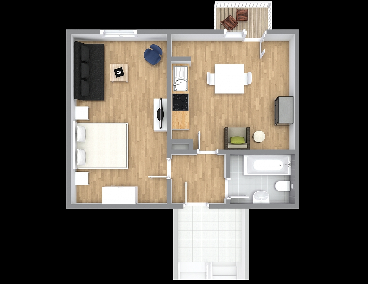 moderne freundliche Möblierung, Laminatboden, integrierte Einbauküche mit Ofen und Herd, Duschbad, Kabel-TV, Flatscreen, DVD-Player, WLAN-Internetanschluss