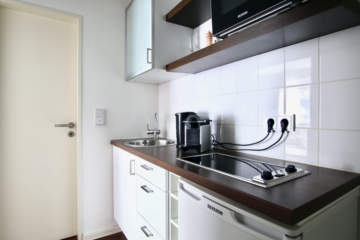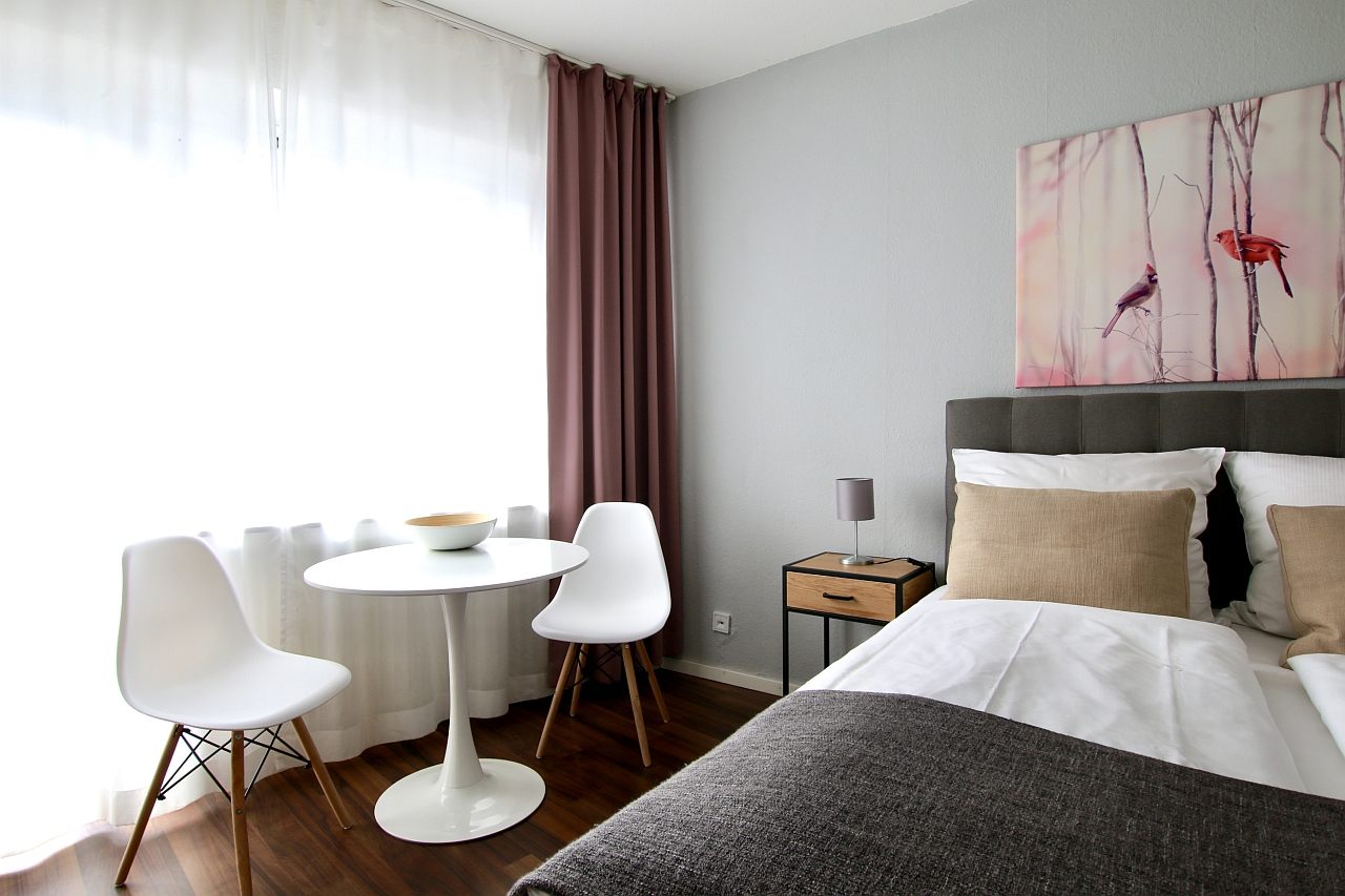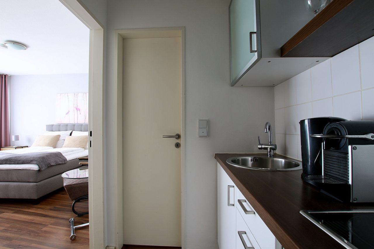 • moderne Möblierung, Laminatboden, integrierte Singleküche mit Mikrowelle, Wannenbad, Kabel-TV, DSL WLAN-Internetanschluss optional, Waschmaschine im Keller