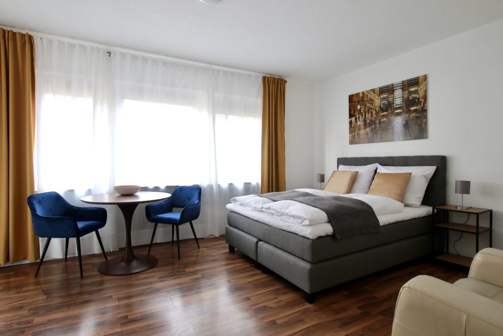 Wohn-/Schlafzimmer mit 1,40 m Bett, Bettwäsche- und Reinigungsservice auf Anfrage (gegen Aufpreis) möglich, Tierhaltung nicht gestattet, Waschkeller vorhanden, DSL WLAN-Internetanschluss 8,00 Euro/Woche optional, Mindestmietdauer 2 Monate,