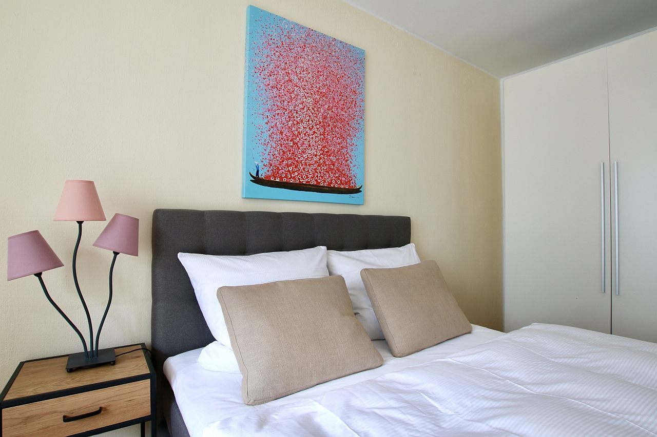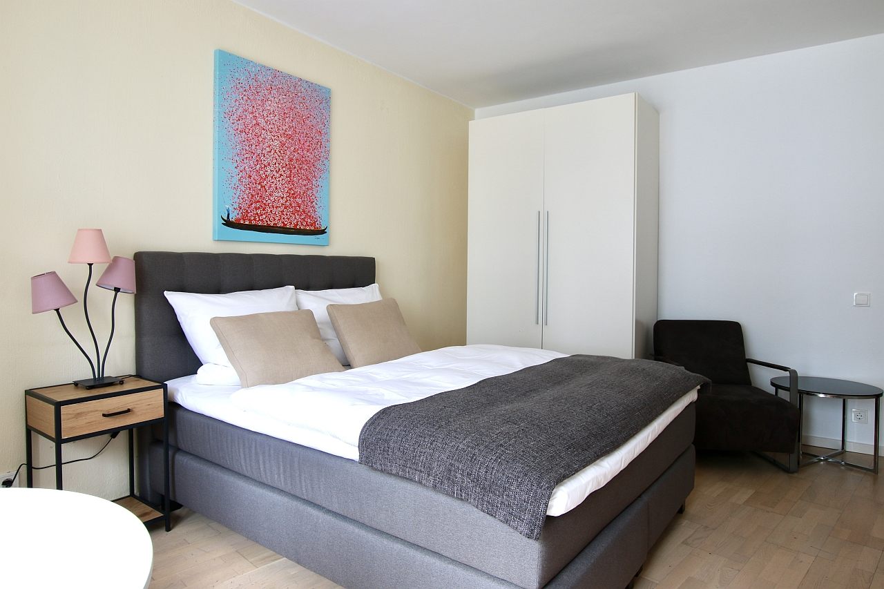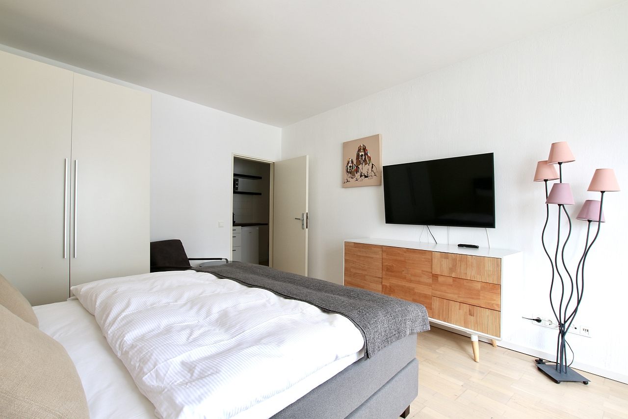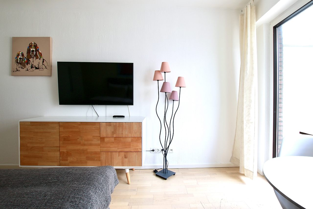 Balkon, Wohn-/Schlafzimmer mit franz. Bett 1,40 m, optional Bettwäsche- und Reinigungsservice, Tierhaltung nicht gestattet, Waschkeller vorhanden, DSL WLAN optional gegen Aufpreis, Mindestmietdauer 2 Monate,
