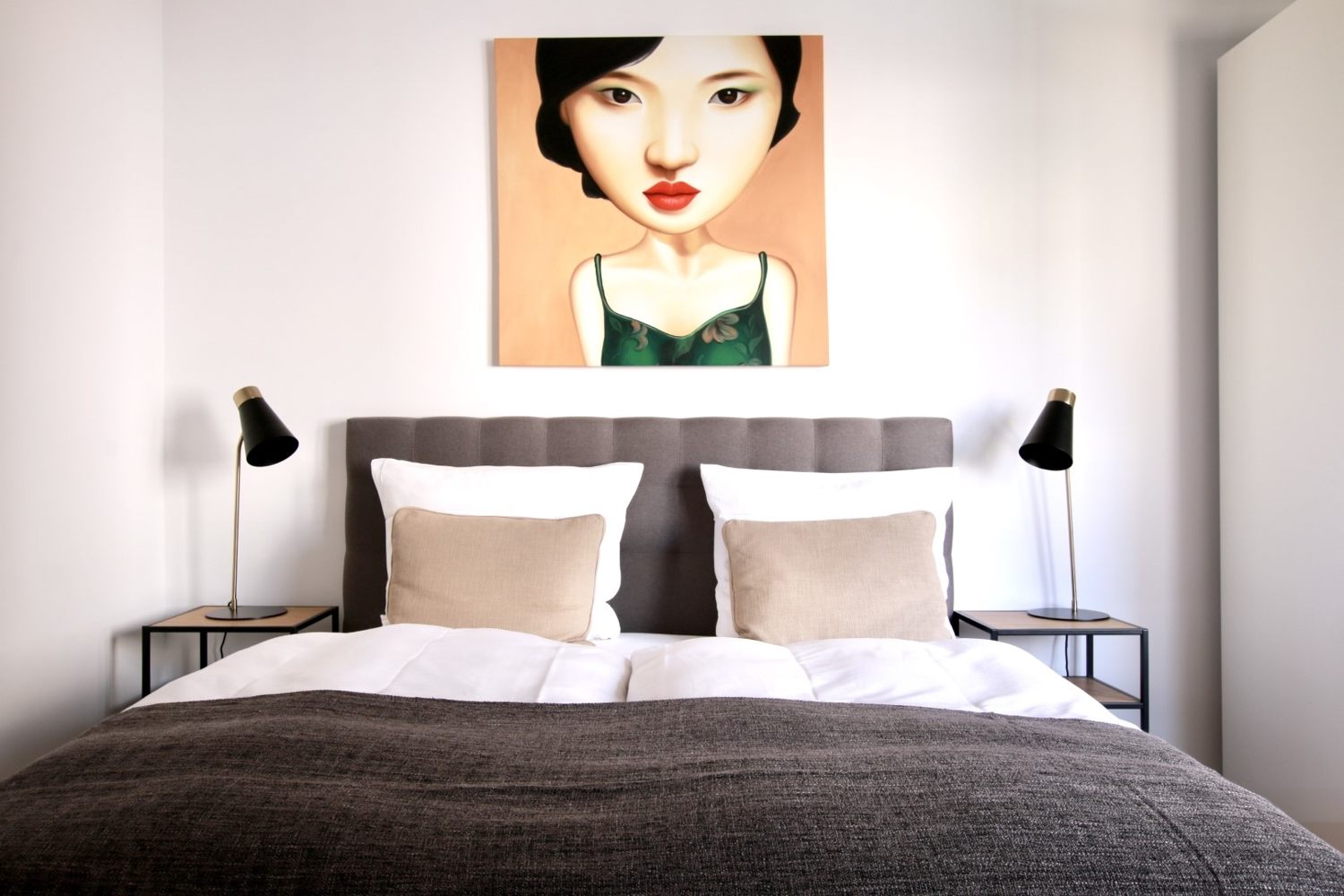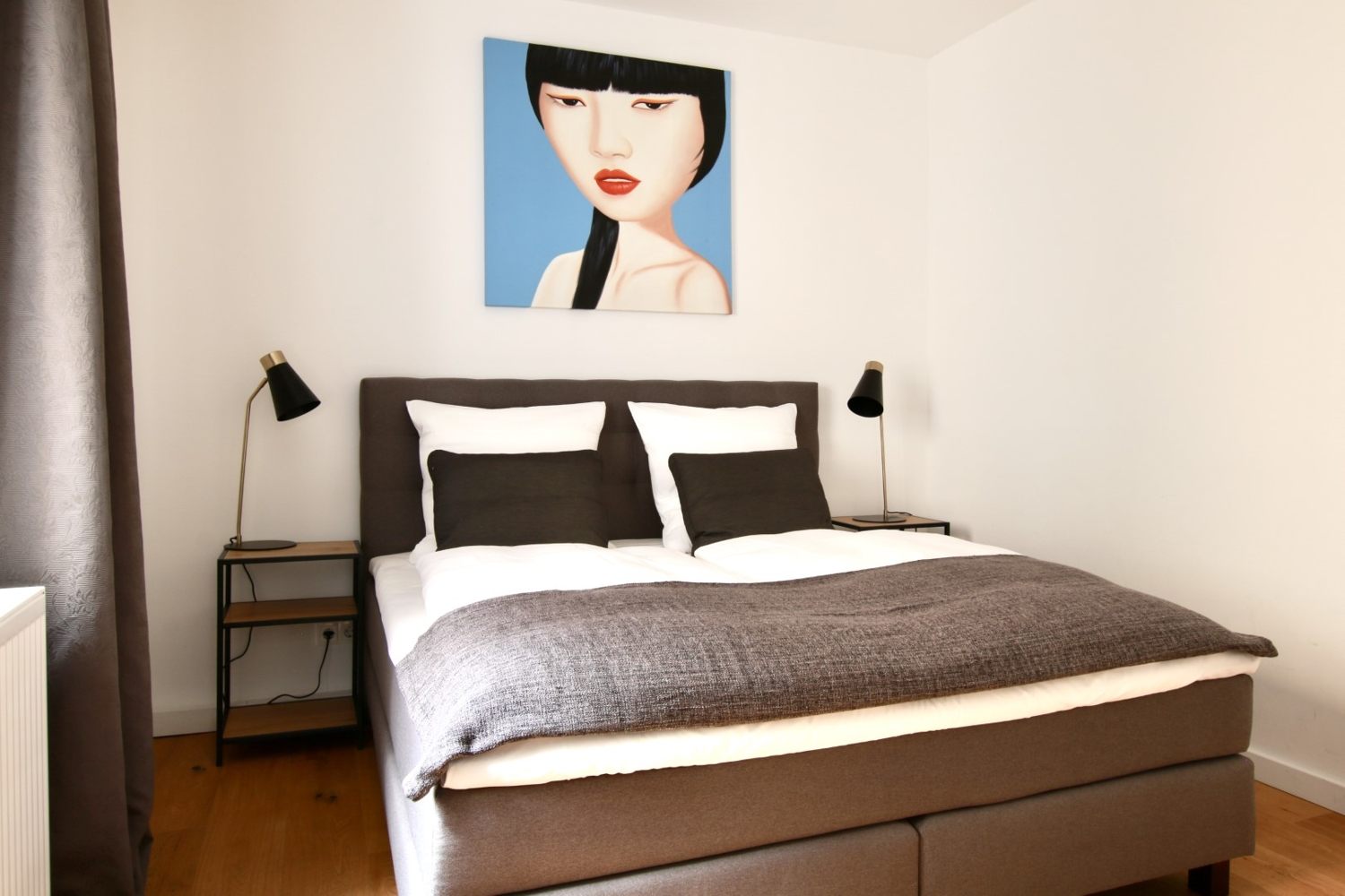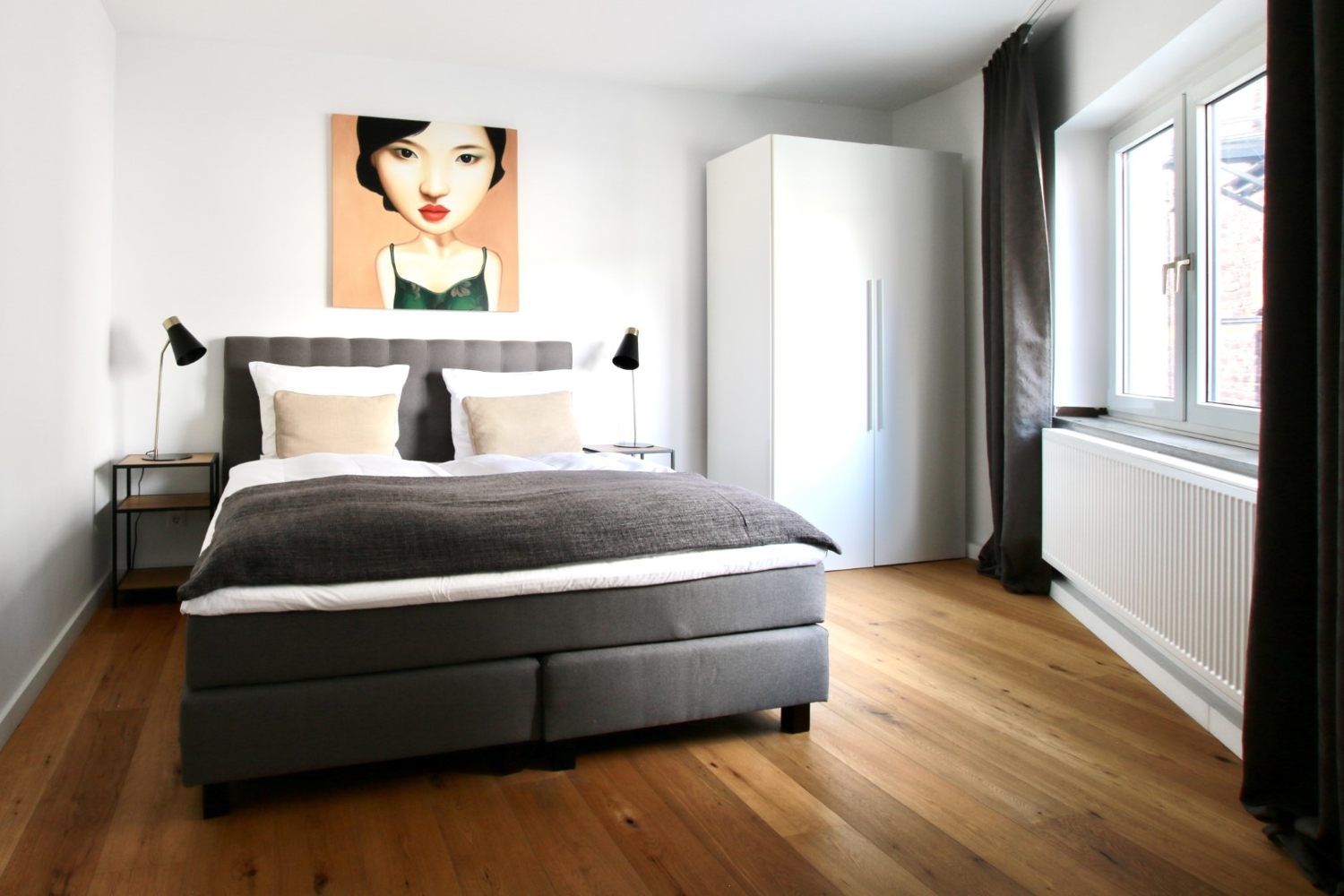 Balkon, Wohnzimmer, 1. Schlafzimmer mit Doppelbett 1,60 m, 2. Schlafzimmer mit französischem Bett 1,60 m, Bettwäsche und Handtücher vorhanden, Tierhaltung nicht gestattet, Rauchen nur auf dem Balkon, WLAN optional gegen Aufpreis, Reinigungs- und Wäscheservice gegen Aufpreis optional, Mindestmietdauer 6 Monate