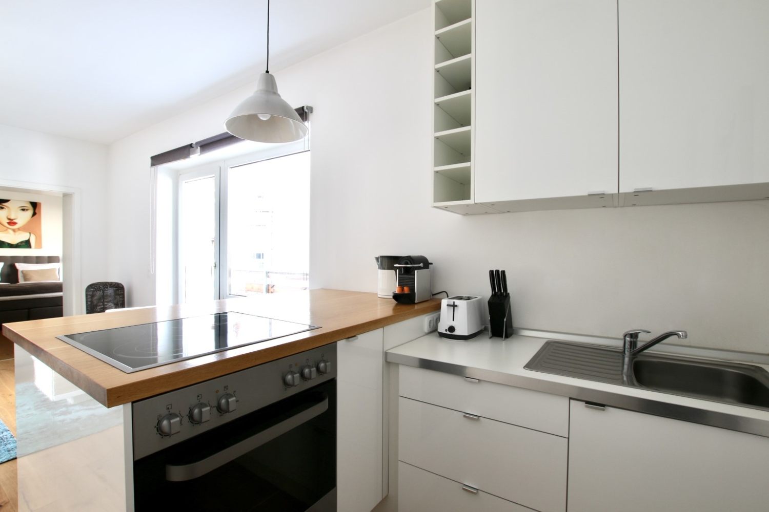 moderne Möblierung, Holzdielenboden, integrierte Einbauküche,Tageslicht Badezimmer mit Wanne und Dusche, Gäste WC, Kabel-TV, Flatscreen, WLAN- Internetanschluss, Waschmaschine