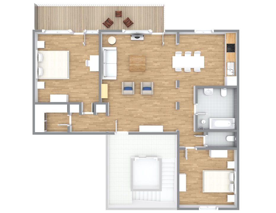 • Moderne, hochertige Möblierung, Parkett und Fliesenboden, voll ausgestattete integrierte Einbauküche mit Spülmaschine, Badezimmer mit Badewanne und separater Dusche, separates Gäste WC, Kabel-TV, Video, WLAN Internetanschluss, Waschmaschine