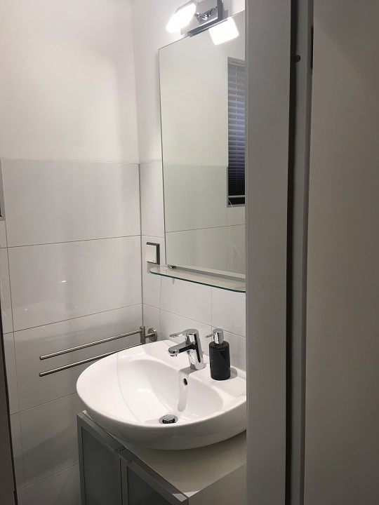 moderne Möblierung, Steinfußboden in Holzoptik, integrierte Singleküche mit Spülmaschine und Mikrowelle, Kaffeemaschine, Duschbad, separates WC, Kabel-TV, WLAN Internetanschluss, Münz- Waschmaschine und Trockner zur Mitbenutzung