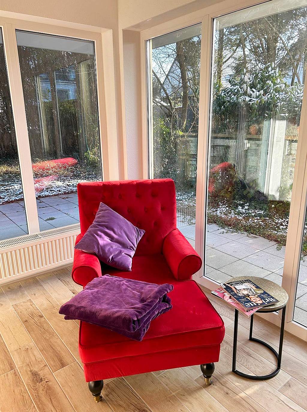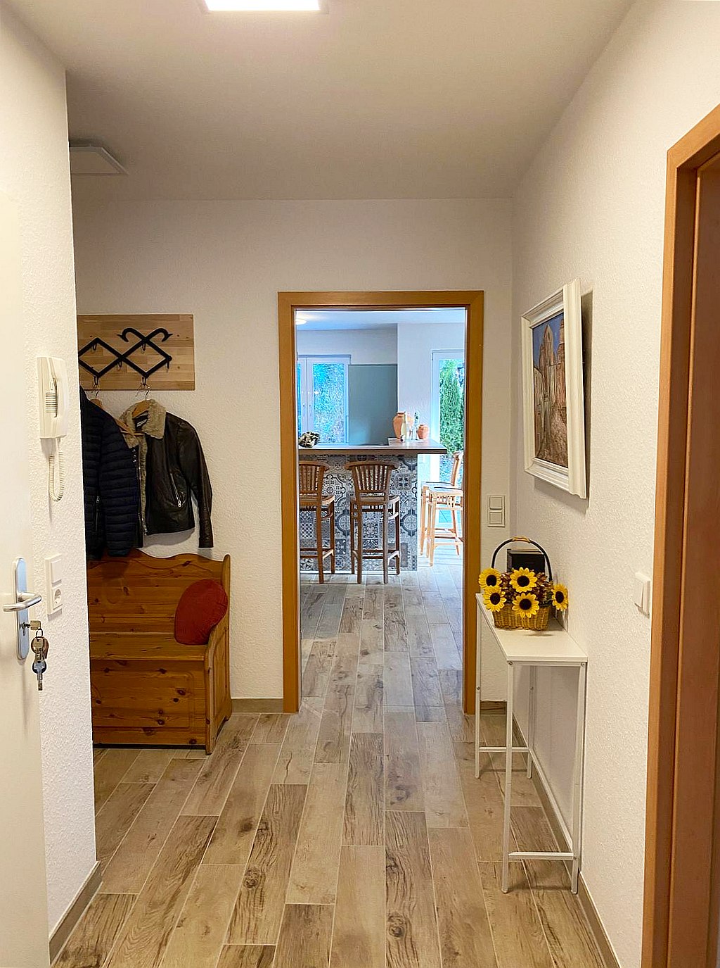 Eigener Garten, Terrasse. Elektrische Rollläden, Doppelisolierverglasung. Wohnzimmer mit Essbereich, Schlafzimmer mit Doppelbett 1,60 m x 2,00 m. Handtücher vorhanden, auf Wunsch, WLAN-Gebühr in Nebenkosten inkludiert, Fahrradkeller vorhanden.