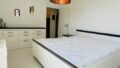 Die separate, voll ausgestattete Küche richtet sich an Kochliebhaber: Hochwertige Geräte, reichlich Stauraum und sämtliche Küchenutensilien stehen zur Verfügung. Auch hier wurde auf Qualität und Design großen Wert gelegt. Das gemütliche Schlafzimmer mit komfortablem Doppelbett, großem Kleiderschrank und einem kleinen Balkon bietet einen angenehmen Rückzugsort. Abgerundet wird die Wohnung durch ein modernes Bad mit Badewanne und Waschmaschine, ein separates WC sowie einen praktischen Abstellraum.