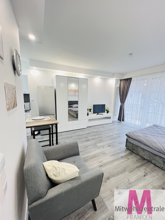 Willkommen in Ihrem neuen Zuhause im Herzen von Nürnberg Stein. Diese exklusive Wohnung besticht nicht nur durch ihre moderne Ästhetik, sondern auch durch ihre hervorragende Lage mit optimaler Verkehrsanbindung. Das luxuriöse Apartment bietet eine hochwertige Möblierung und eine durchdachte Raumaufteilung. Der Schlafbereich ist mit einem komfortablen 160×200 Bett ausgestattet, das zu erholsamen Nächten einlädt. Das moderne Bad ist eine kleine Wellnessoase für zu Hause.