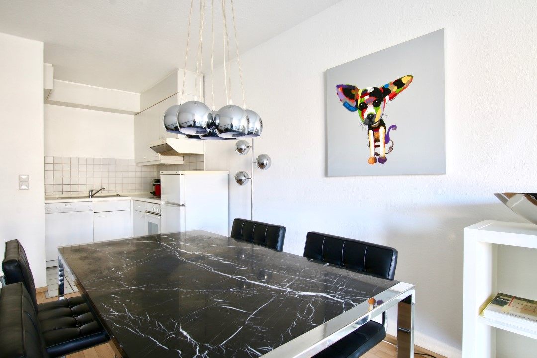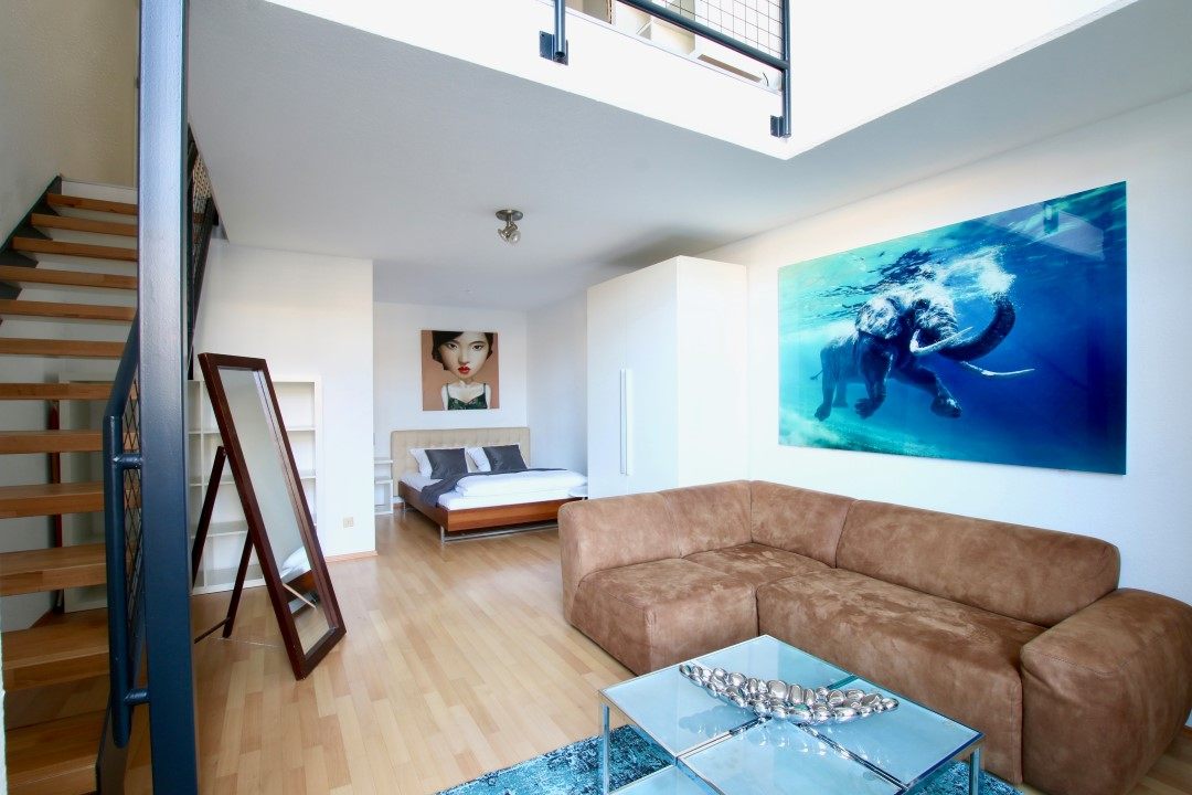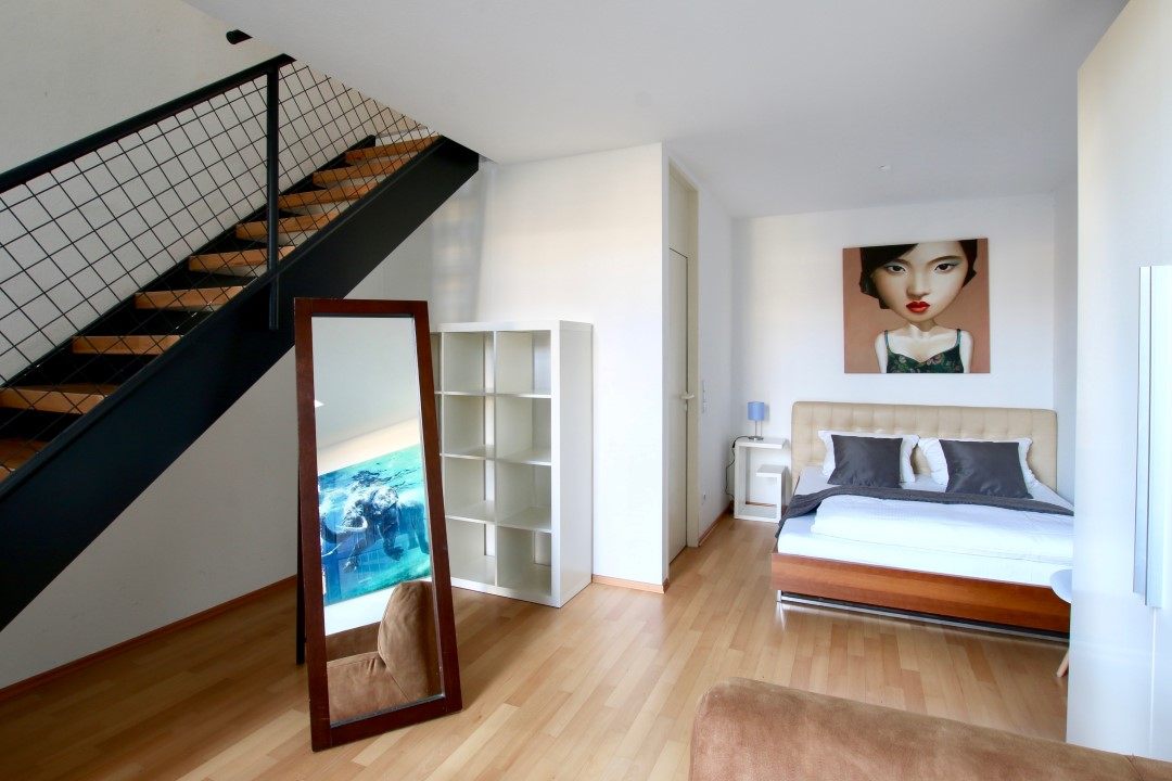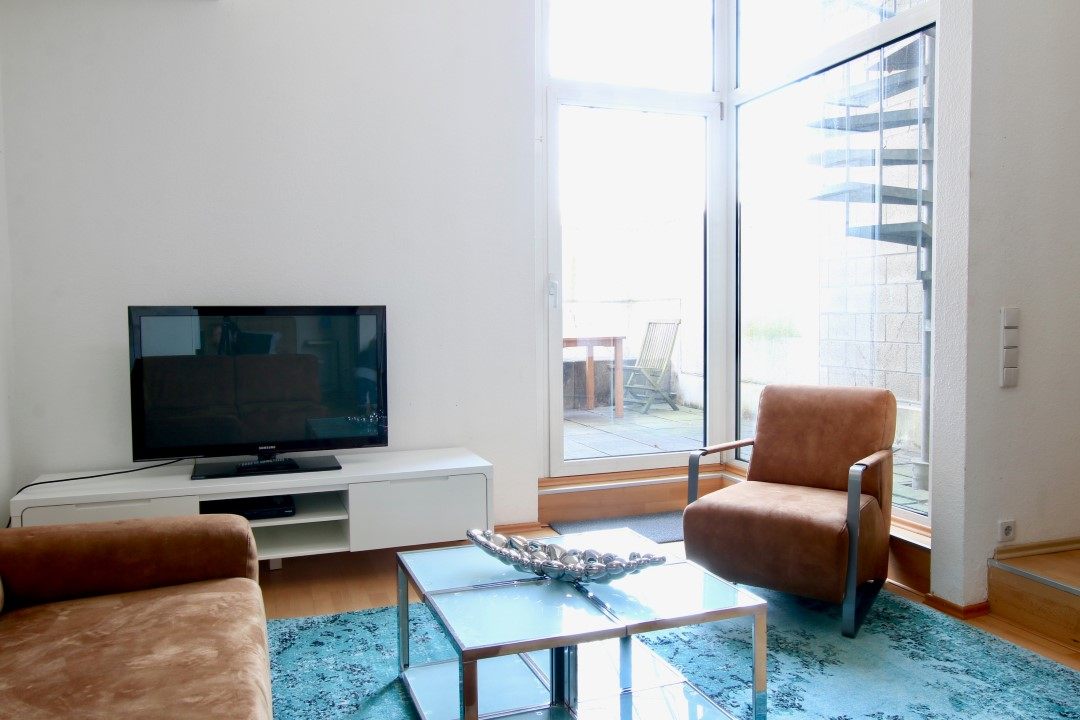 Quiet area, 2 levels, 1st-level: kitchen and dining room, 2nd level: living room with terrace and box-spring bed 1,60m, inkl. WiFi internet connection, bed linen and towels included, cleaning service possible at an extra charge, minimum term of lease 6 months, plus final cleaning 220,00 €
