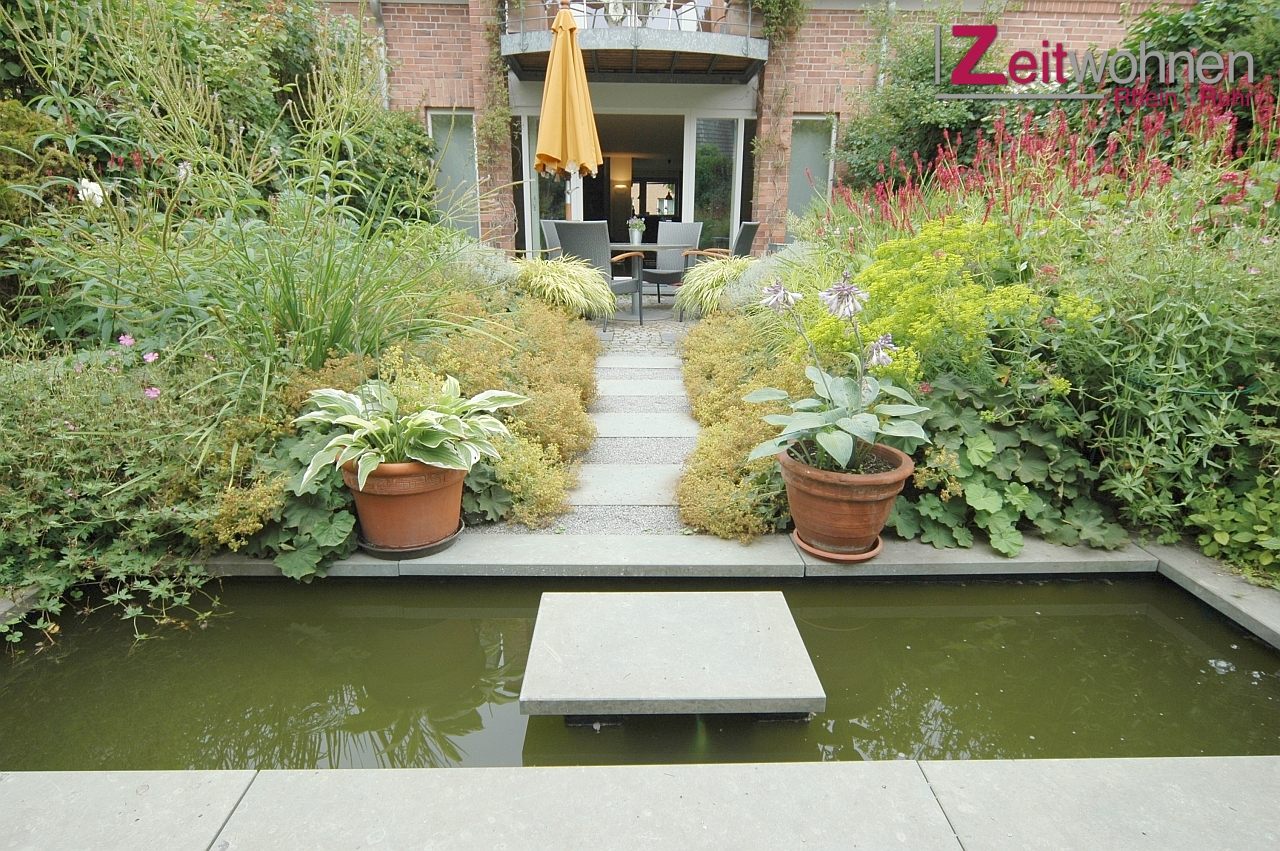80 m² garden with terrace, fireplace with wood supply, living room with dining area, 1 bedroom with double bed 1.60 m, 2nd bedroom with double bed 1.50 m, study, incl. Wifi Internet access, wellness area with sauna, shower and fitness equipment, bed linen towels available, separate home office area (19 sqm) can be rented for an additional fee, non-smoking, pets not allowed, max. 4 persons, minimum rental period 6 months