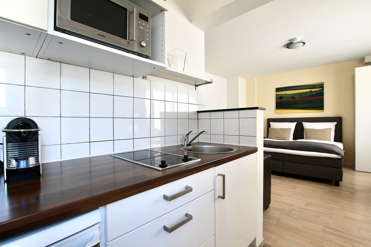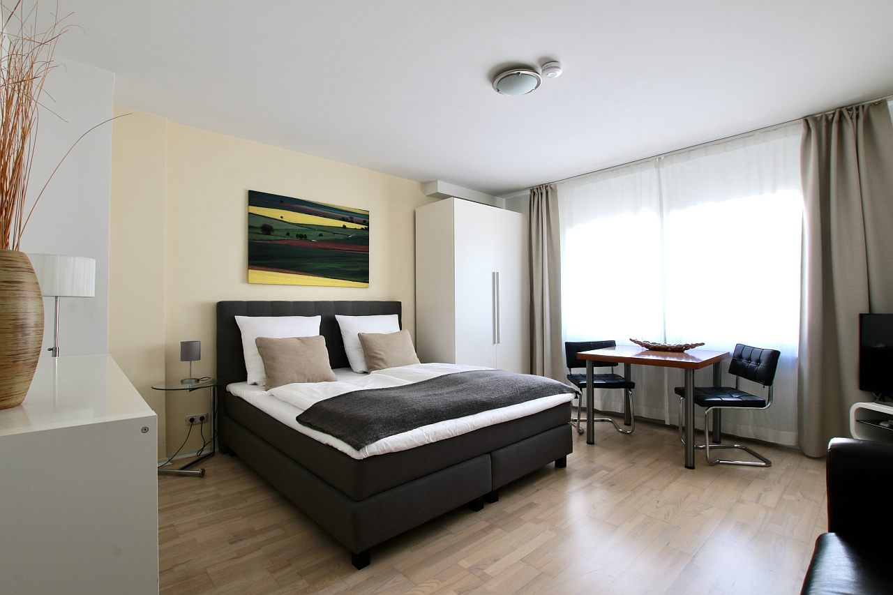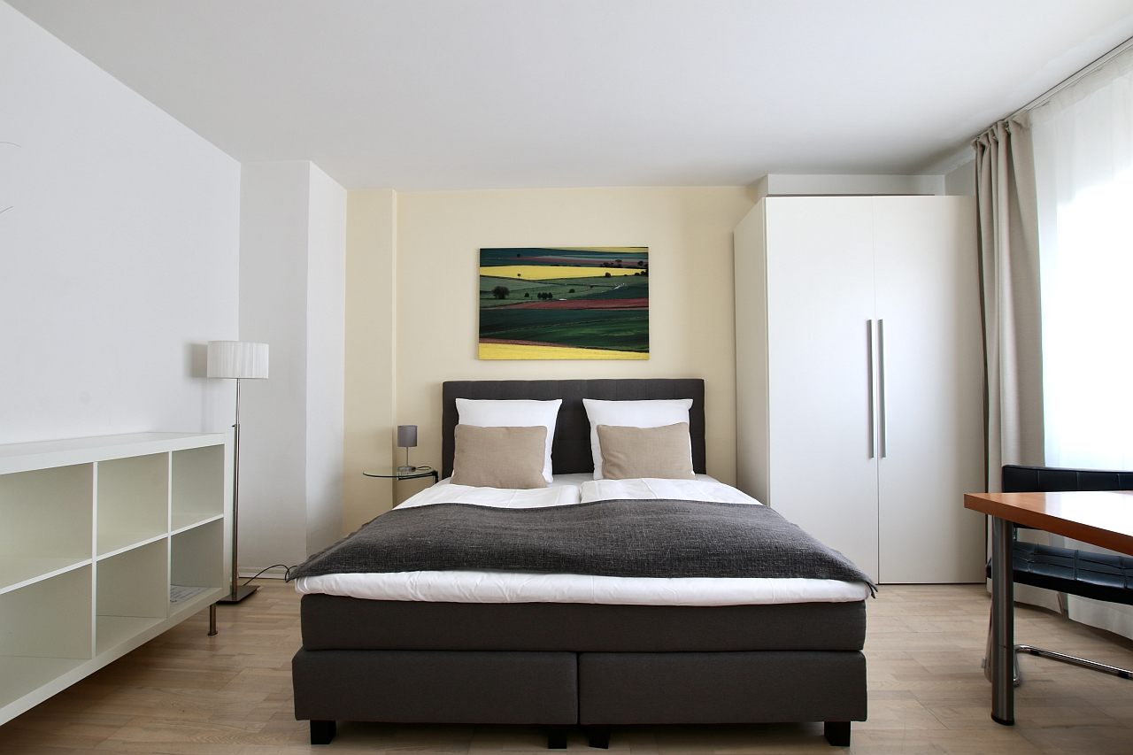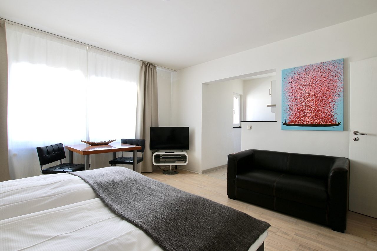 Bed/Livingroom with a new box-spring bed 1.80 m, bed linen and towels included, cleaning service possible at an extra charge, WiFi internet connection incl., minimum term of lease 2 months, plus final cleaning 180,00 €