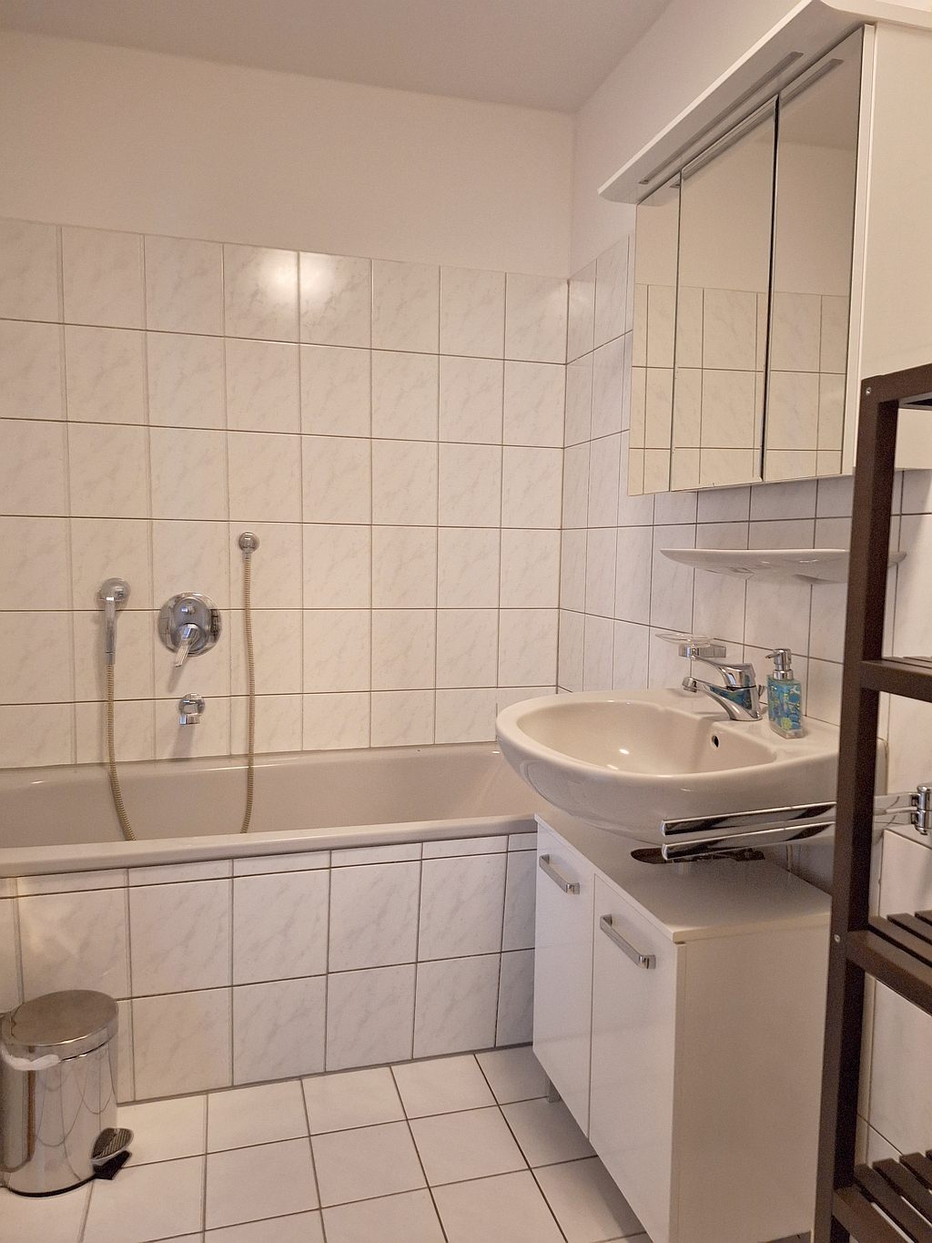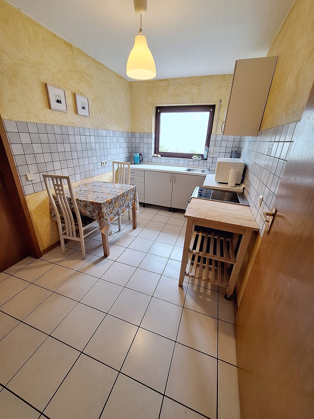 well-kept furnishings, tiled floor, open fitted kitchen with oven and microwave, bathroom with shower and bathtub, satellite TV, flatscreen, incl. Wi-Fi internet access, washing machine and dryer in the cellar for shared use