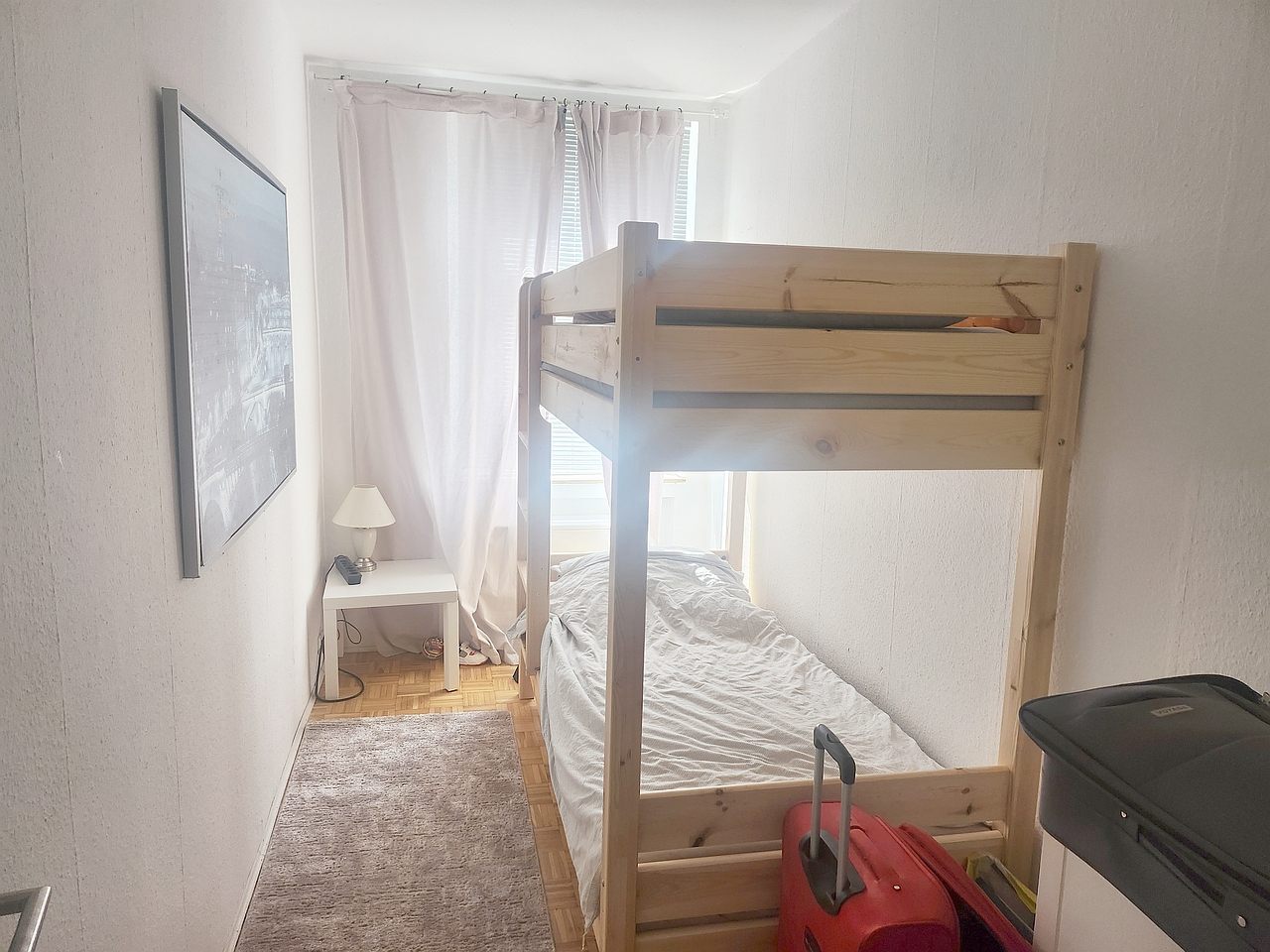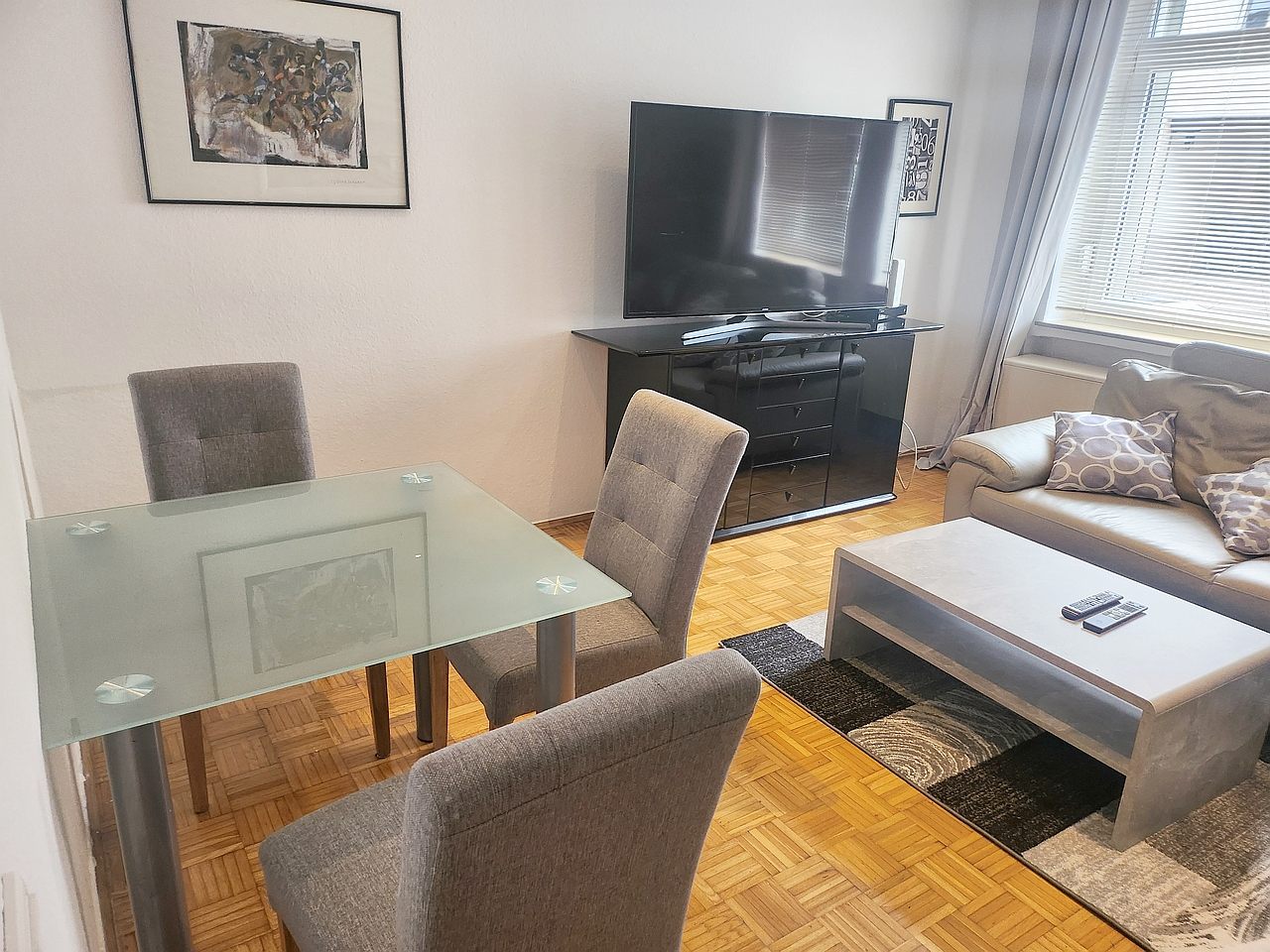 living room, bedroom with doublebed 1,80m, guestroom with single bed 0,90m, bedlinen and towels available, cleaning- and laundry-service against a surcharge optionally, incl. internet, parking garage optionally, non-smoking, pets by arrangement, max. 3 persons, minimum term of lease 3 months