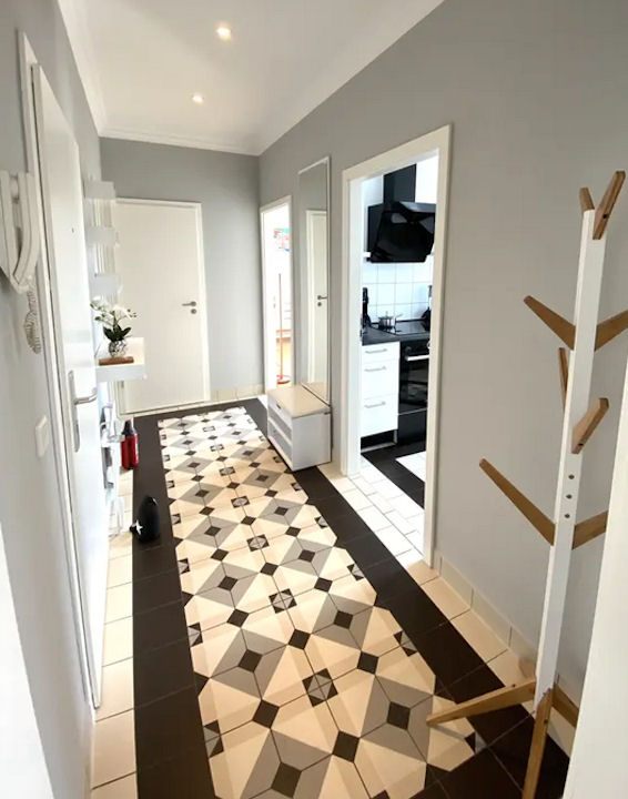 modern and high-quality furniture, wooden floorboards, separate fitted kitchen with induction stove, microwave, fully automatic coffee machine and dishwasher, bathroom with tub, WiFi Internet access with 250 Mbit, storage room in the hallway, own cellar room, washing machine and dryer in the laundry room,