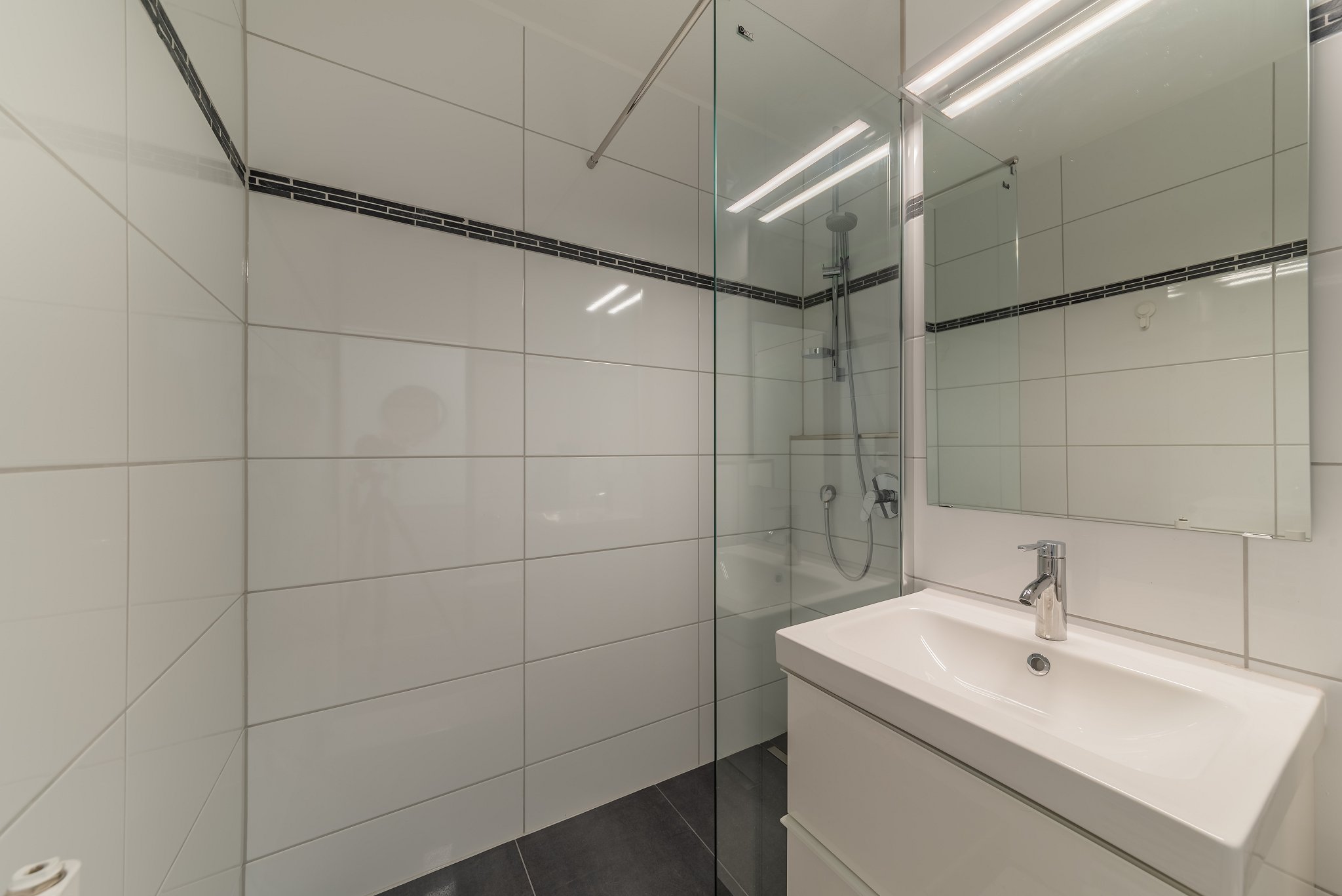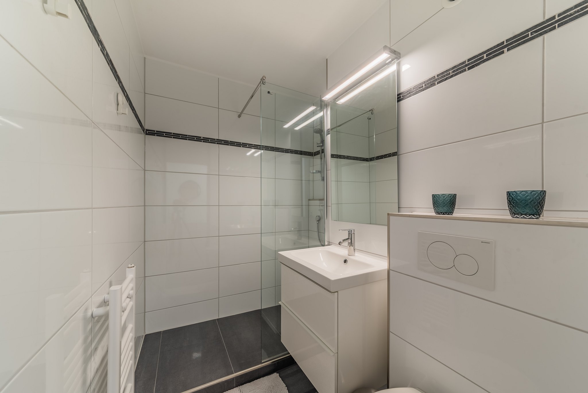 - Modern bathroom with light tiles