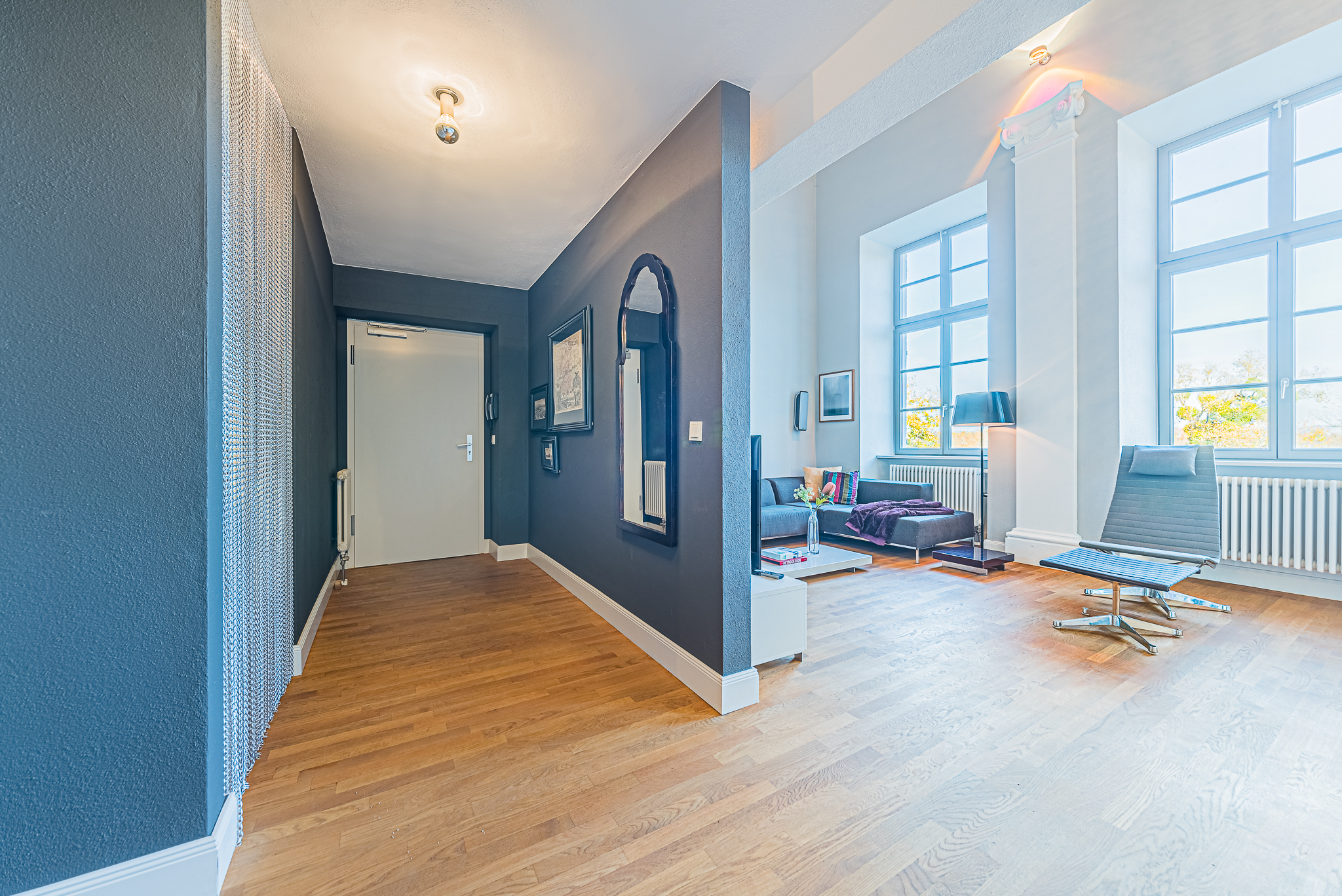 - Altbauelemente im Wohnzimmer, High ceilings, Open, modern spaces