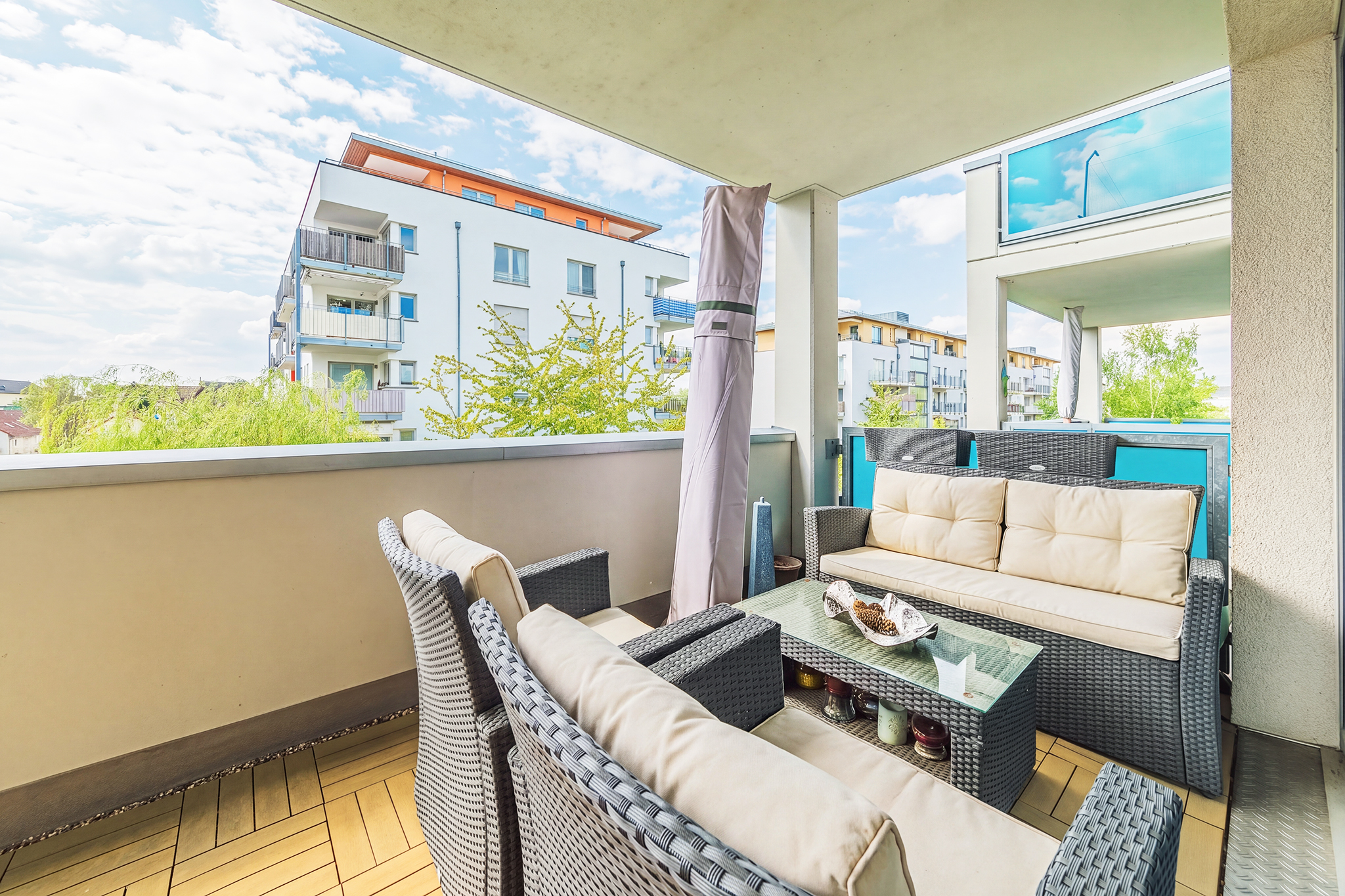 , balcony furniture, parasol