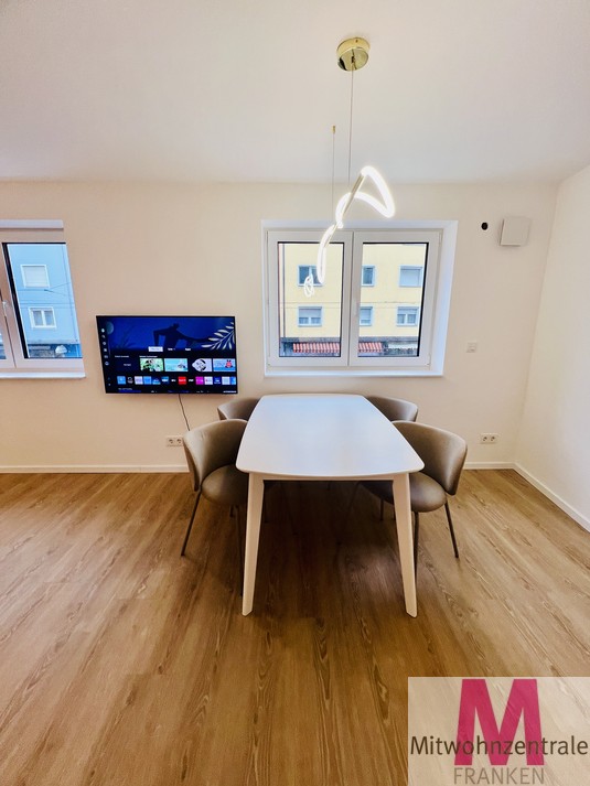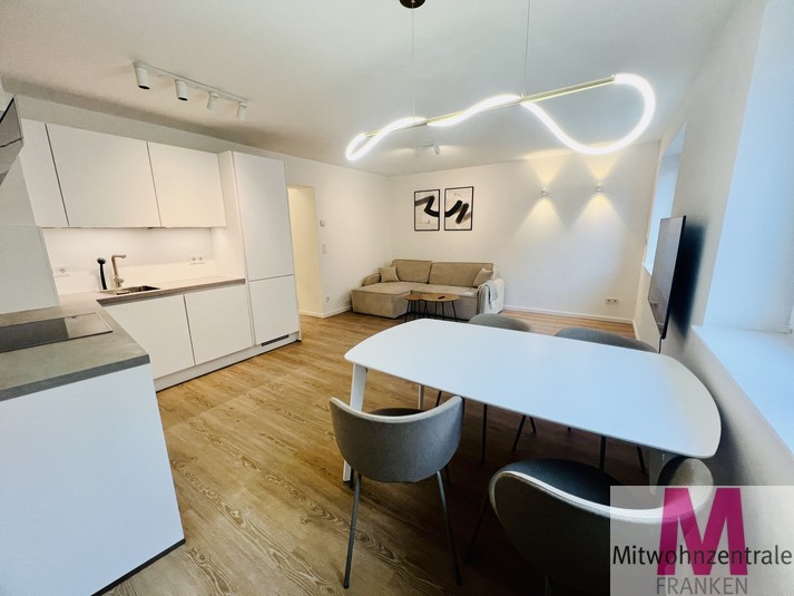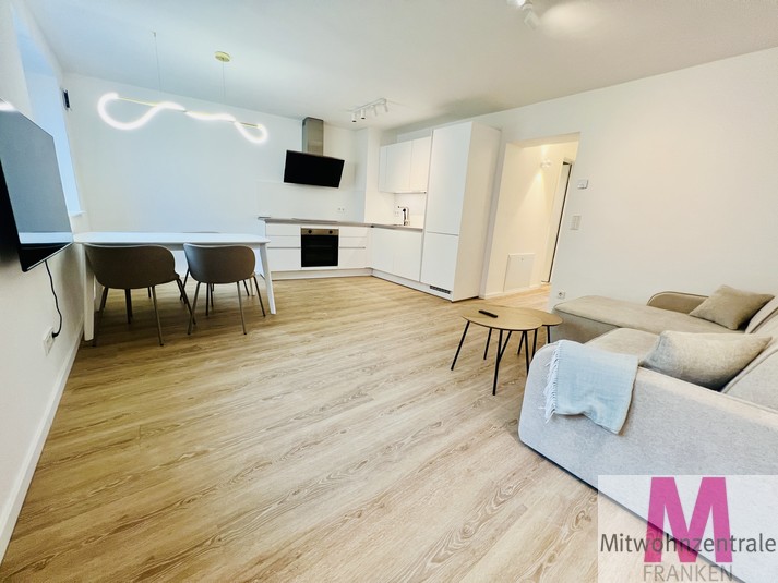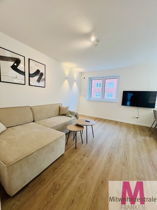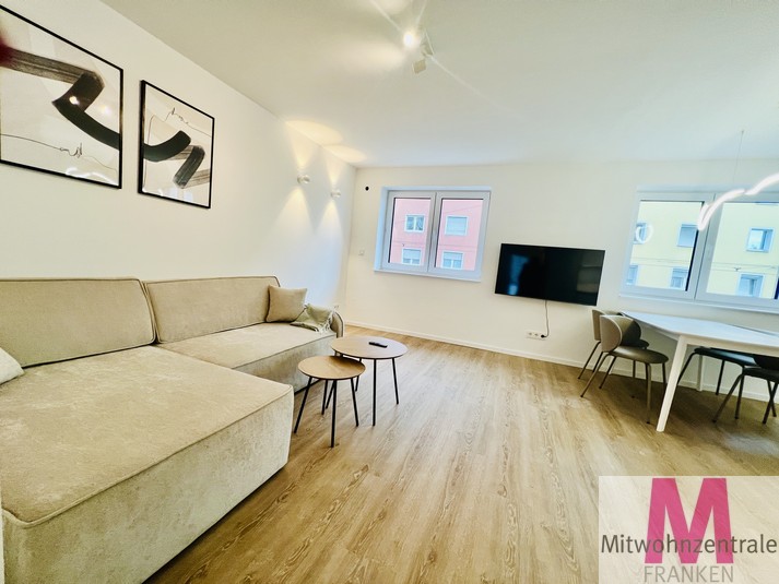 Rental conditions: The monthly rent is € 1390.00 ALL INCXLUSIVE! including an advance payment of € 140.00 for utilities. The service charges already include internet, electricity and heating, so you don’t have to worry about anything else. A parking space can be rented for an additional charge. Property description: Welcome to your exclusive home! This completely renovated and high-quality furnished 2-room apartment with an area of 60m² impresses with its modern design, special flair and offers a unique living experience. With high ceilings and stylish furnishings, you can expect a luxurious home in a first-class location. The apartment is located in the immediate vicinity of Nuremberg city center and is ideal for discerning tenants who appreciate a stylish and comfortable living atmosphere. Layout: Space-saving built-in wardrobes have been installed in the prestigious entrance area to provide ample storage space. The bright living room has a large dining area, a cozy living area and a Smart TV. The adjoining open-plan fitted kitchen has a dishwasher, a fridge-freezer, an induction hob, an oven and all the equipment that makes the heart of cooking enthusiasts beat faster. The bathroom with floor-level shower and washing machine is the perfect wellness oasis at home. The adjoining bedroom with plenty of storage space and a comfortable double bed ensures restful nights. From here you can access the large balcony, where you can relax after work with a view of the greenery. Location: The apartment not only impresses with its high-quality furnishings, but also with its excellent location. It is located in the immediate vicinity of the center of Nuremberg, which means short distances to shopping facilities, restaurants, bars and cultural institutions. The public transport connections are excellent, so you can easily explore the entire city. Summary: This completely renovated designer apartment offers you modern and comfortable living at the highest level. With high-quality furnishings, an exclusive fitted kitchen, a stylish bedroom and an inviting living area, this apartment fulfills even the most sophisticated living dreams. The proximity to the center of Nuremberg and the first-class furnishings make this apartment a real gem.