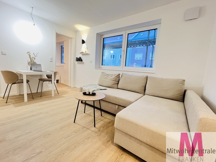 Rental conditions: The monthly rent is €1,090.00 including an advance payment of €100.00 for ancillary costs. The service charges already include internet, electricity and heating, so you don’t have to worry about anything else. A parking space can be rented for an additional charge. Description: Welcome to your exclusive home for first-time occupancy! This high-quality furnished 2-room apartment with an area of 32m² impresses with its modern design, special flair and offers a unique living experience. With high ceilings and stylish furnishings, you can expect a luxurious home in a first-class location. The apartment is located in the immediate vicinity of Nuremberg city center and is ideal for discerning tenants who appreciate a stylish and comfortable living atmosphere. Room layout: In the entrance area space-saving wardrobes and built-in cupboards have been installed to provide ample storage space. The bright living room has a dining area and a cozy living area as well as a Smart TV. The adjoining open-plan fitted kitchen has a washing machine, a dishwasher, a fridge-freezer, an induction hob, an oven and all the equipment that makes the heart of cooking enthusiasts beat faster. The bathroom with floor-level shower is the perfect wellness oasis at home. The adjoining bedroom with plenty of storage space and a comfortable bed ensures restful nights. Location: The apartment not only impresses with its high-quality furnishings, but also with its excellent location. It is located in the immediate vicinity of the center of Nuremberg, which means short distances to shopping facilities, restaurants, bars and cultural institutions. This completely renovated designer apartment for first-time occupancy offers you modern and comfortable living at the highest level. With high-quality furnishings, an exclusive fitted kitchen, a stylish bedroom and an inviting living area, this apartment fulfills even the most sophisticated living dreams. The proximity to the center of Nuremberg and the first-class furnishings make this apartment a real gem.