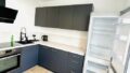 The spacious hallway with checkroom connects all rooms. The living room is furnished with a comfortable sofa, a recliner, a smart TV and a dining area – this is a great place to receive guests and the room offers space for the whole family. From the living room, you can access the large sunny balcony, which invites you to relax. In the bedroom, a double bed guarantees restful nights and there is plenty of storage space for comfort. The third room can be used as a guest or children’s room and has a single bed, a closet, a chest of drawers and a desk that is ideal for a home office.