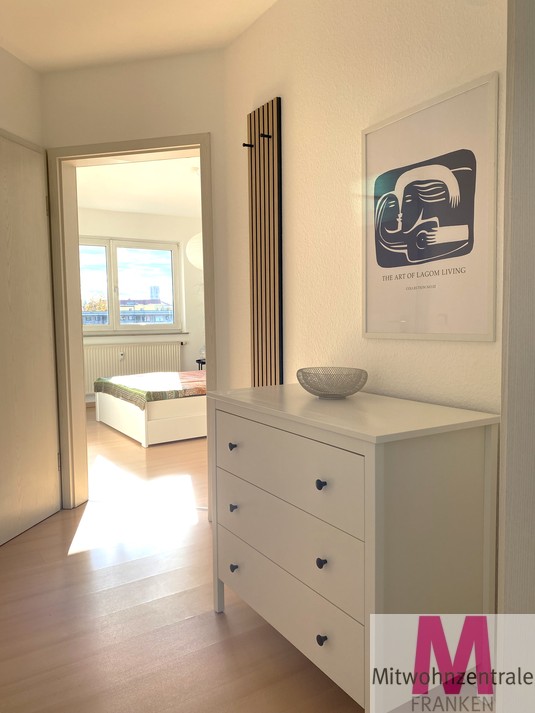 This newly furnished 2-room apartment with 45 square meters of living space is located on the fourth floor of an apartment building in the Schoppershof district. The fully equipped fitted kitchen leaves nothing to be desired thanks to its ample storage space. You can expect new kitchen appliances, a refrigerator, an oven, and much more. The open kitchen leads directly to the living area, where you have access to a beautiful roof terrace, a cozy place to relax and enjoy your morning coffee. The stylishly furnished living area features seating, a TV, and a dining area. There is also additional storage space in the living area. The bedroom is furnished with a double bed, while the optimal layout provides ample storage space. The modern bathroom features a bathtub and additional storage space. The apartment also includes a basement storage unit and an underground parking space, which can be rented for €60.00 per month. The apartment also has an internet connection, perfect for working from home.